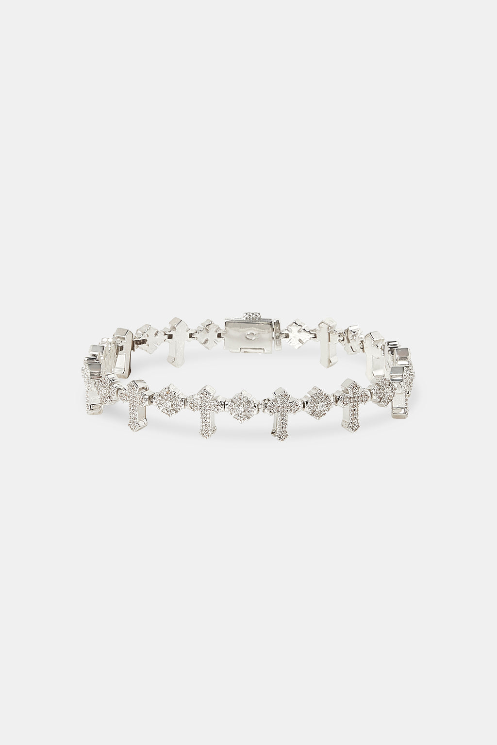 Das Iced Double Cross Infinity Armband ist hart im Nehmen. Kombinieren Sie es mit einer Kette oder einem Ring für den ultimativen Flex.
