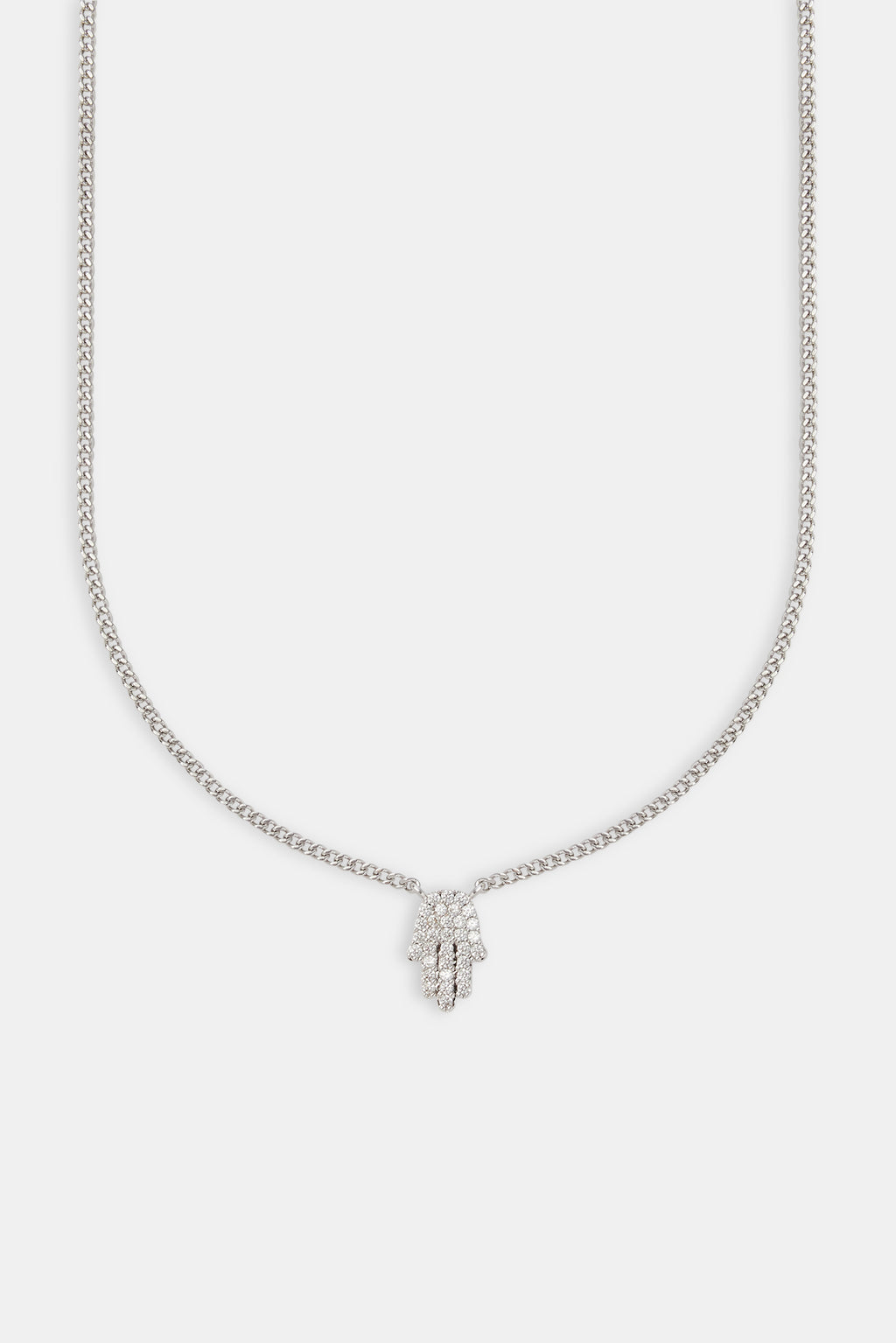 Halskette mit geeister Hamsa-Hand und 5A-Zirkonia-Steinen. Kombinieren Sie sie mit einem geeisten Armband für einen unvergleichlichen Glanz.