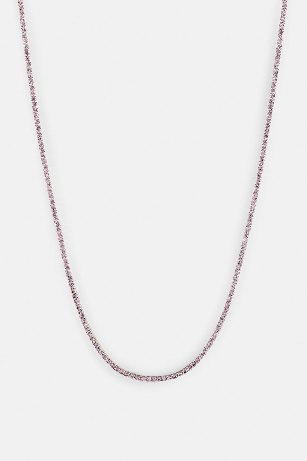 Die hellrosa Micro-Tenniskette besteht aus funkelnden blauen Steinen, die für ununterbrochenen Glanz und eine tolle Aura sorgen.