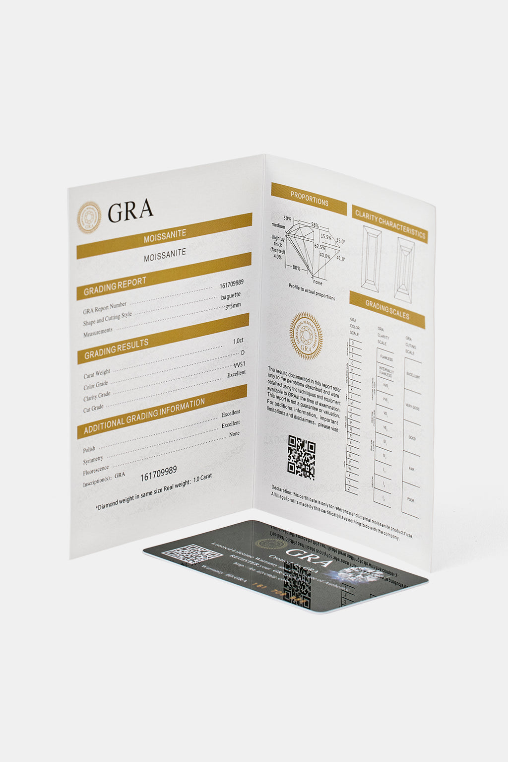 - Alle Moissanit-Produkte müssen zusammen mit dem GRA-Bericht und der Karte zurückgesendet werden.