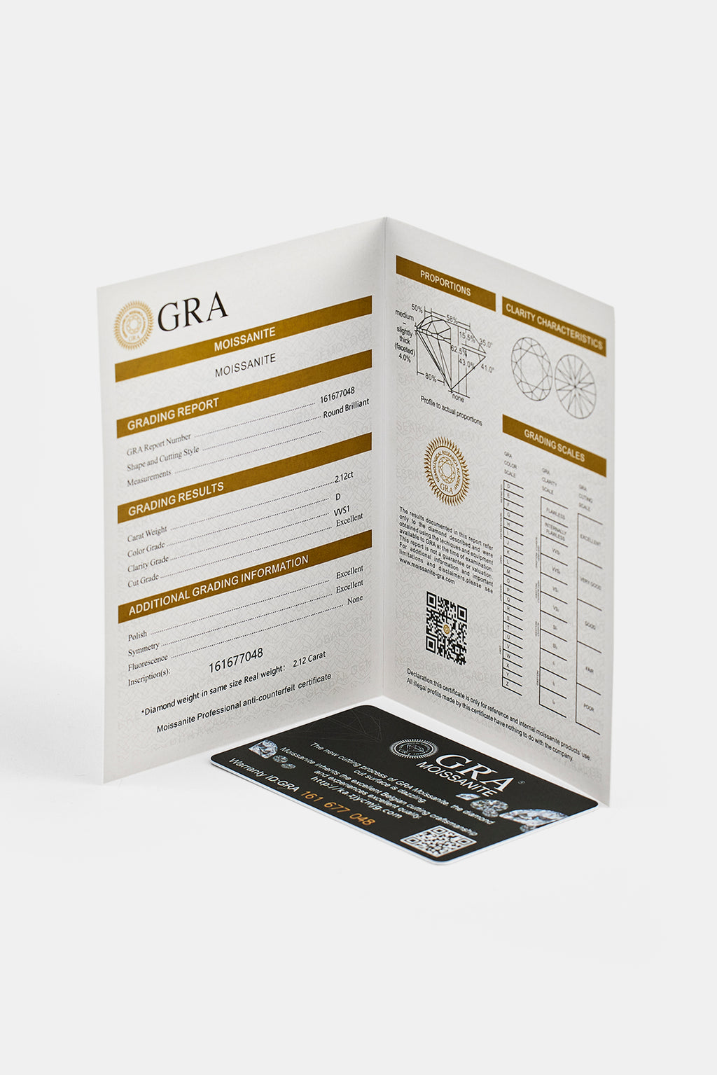 Unser Moissanit-Ring hat die Reinheitsstufe VVS, was bedeutet, dass die Diamanten mit bloßem Auge völlig farblos sind. Sie werden von den meisten Handdiamantentestern als Diamanten erkannt. Die perfekte Alternative zu großen Diamanten, die Tausende kosten.