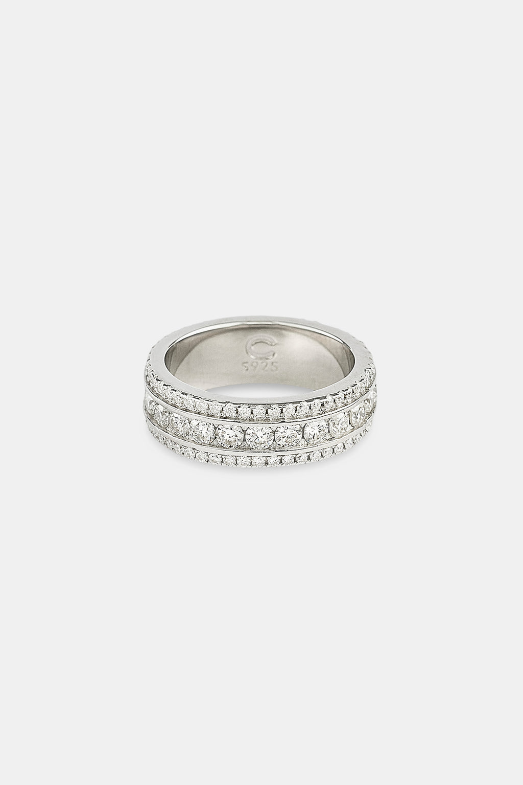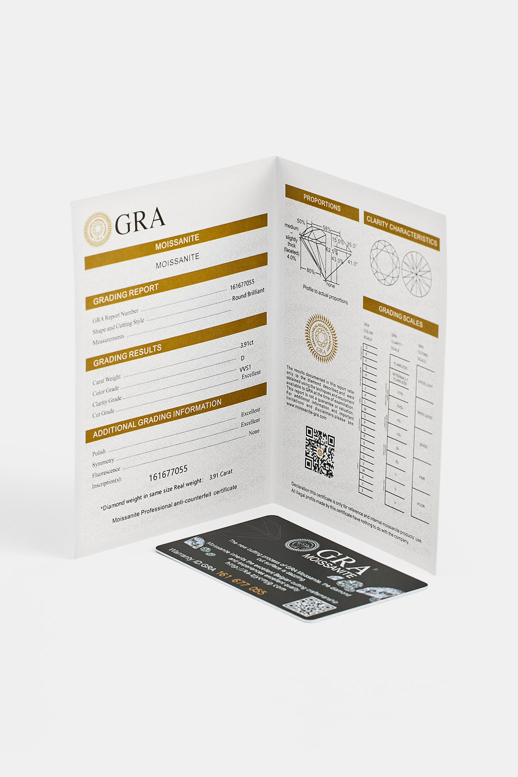 Unser Moissanit-Ring mit Eisschichtung hat die Reinheitsstufe VVS, was bedeutet, dass die Diamanten mit bloßem Auge völlig farblos sind. Sie werden von den meisten Handdiamantentestern als Diamanten erkannt. Die perfekte Alternative zu großen Diamanten, die Tausende kosten.