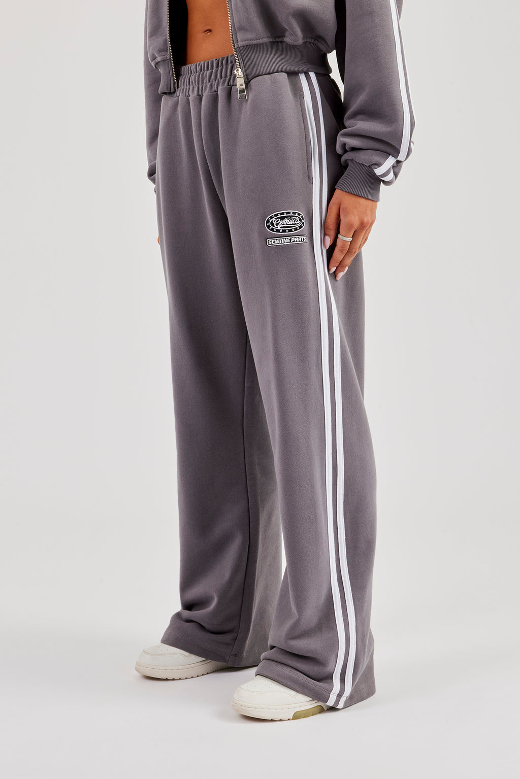 Jogginghose in verwaschenem Anthrazit mit weitem Bein und aufgesticktem Motorrad-Abzeichen. Hochwertiges, schweres, weiches Jersey. Kombinieren Sie sie mit dem passenden Hoodie für den kompletten Look.