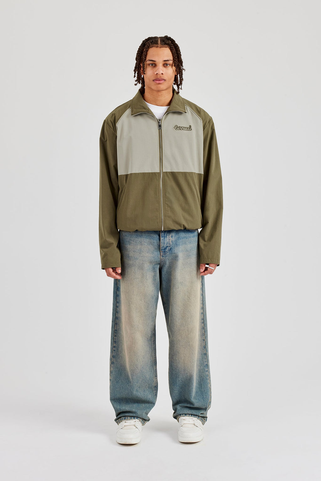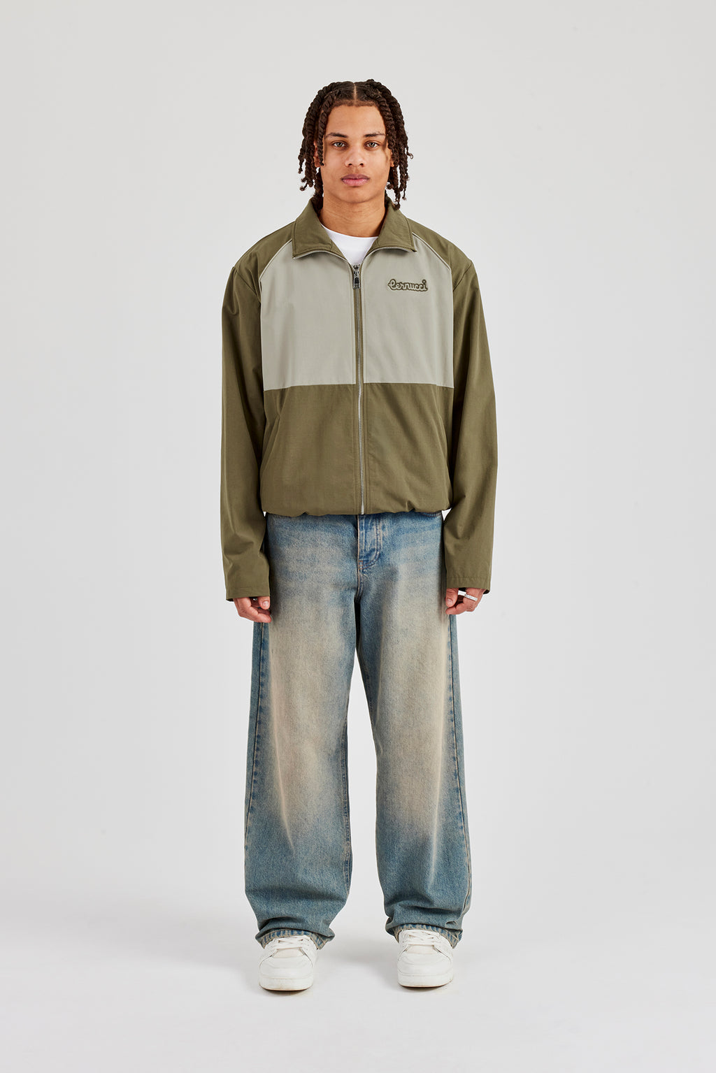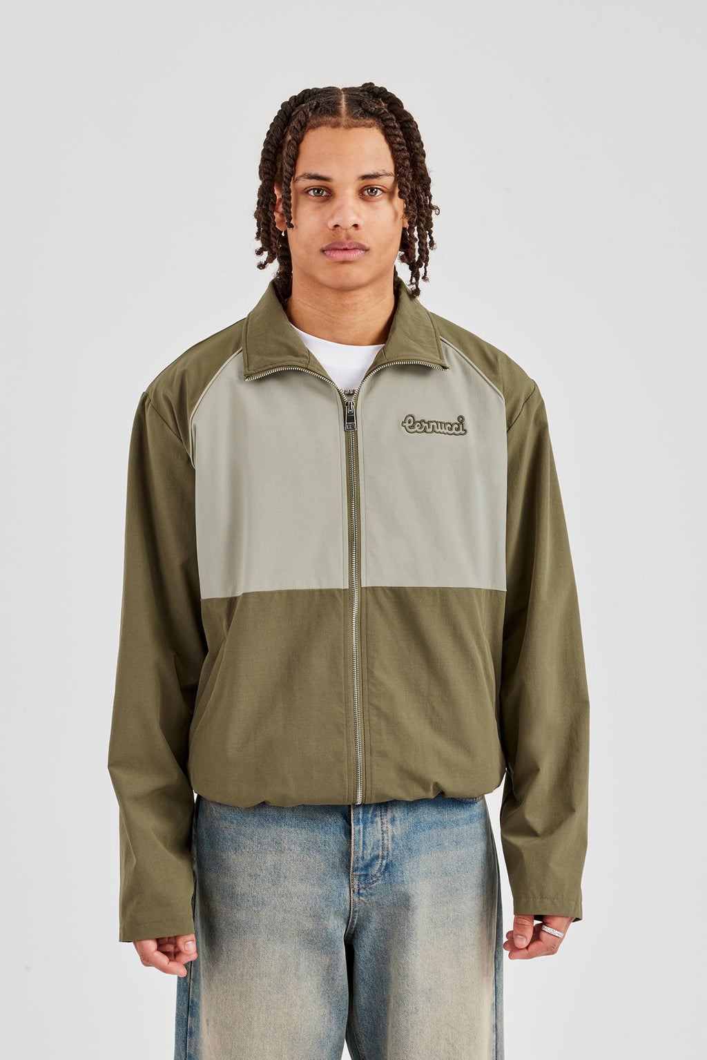 Trainingsjacke mit Trichterhalsausschnitt und Kontrasteinsatzdetails aus leichtem Nylon.