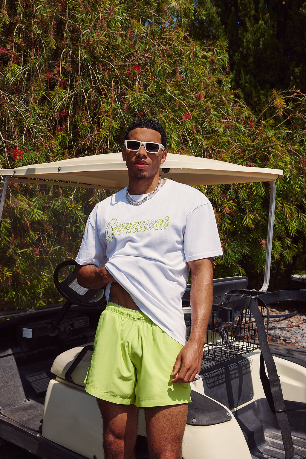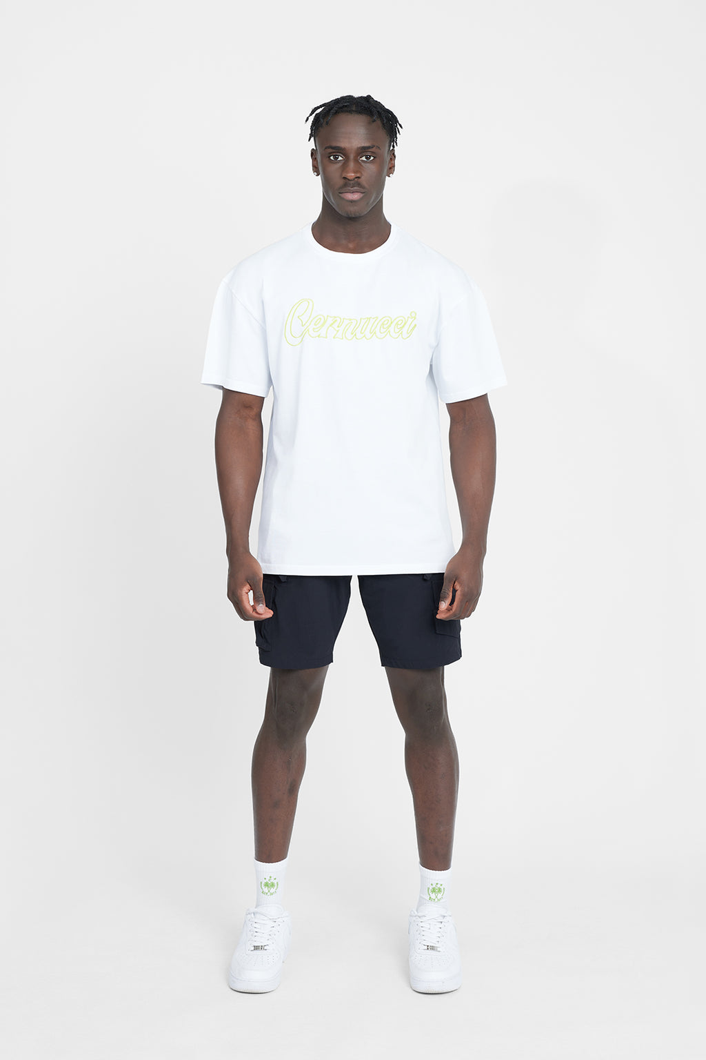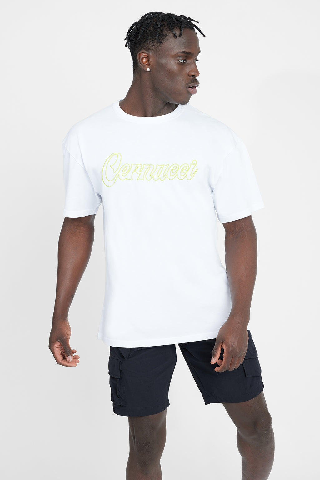 Klassisches besticktes T-Shirt von Cernucci. Übergroße Passform aus mittelschwerer, weicher Baumwolle.