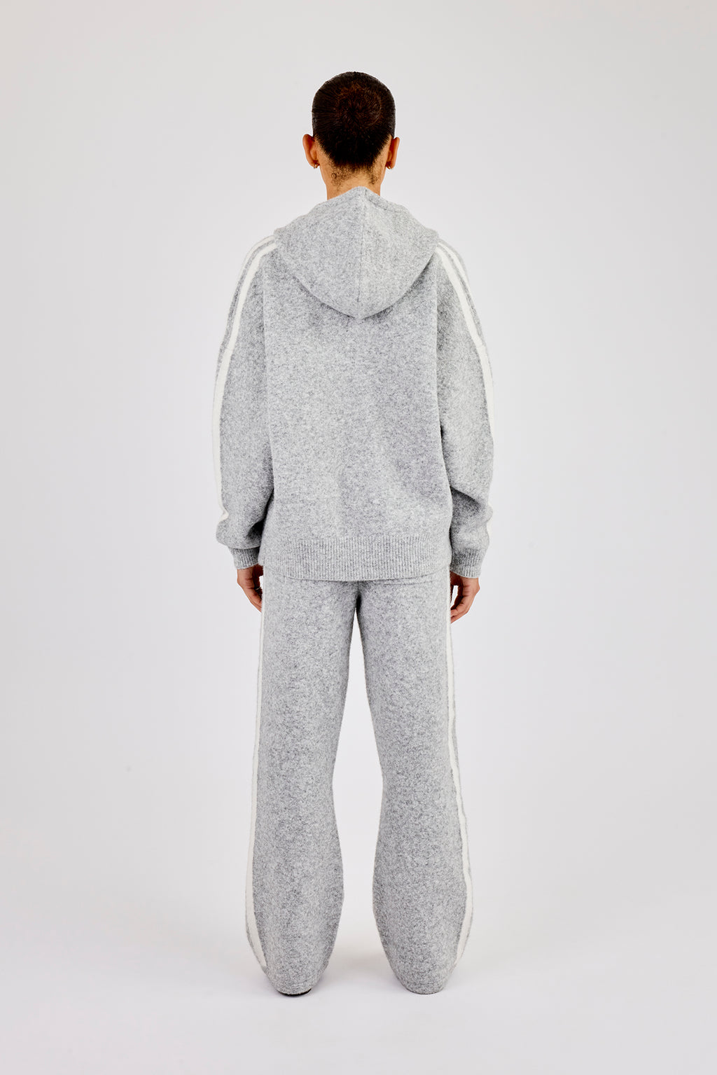 Grey wide leg jogger featuring contrast stripe detailing, in a soft touch knit. Pair with our matching zip through to complete the look.