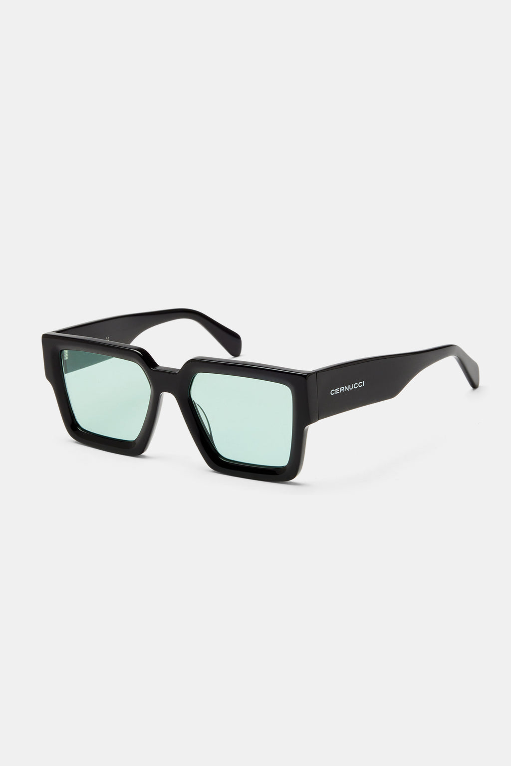 Oversize-Sonnenbrille aus grünem Acetat mit dickem Rahmen - Schwarz