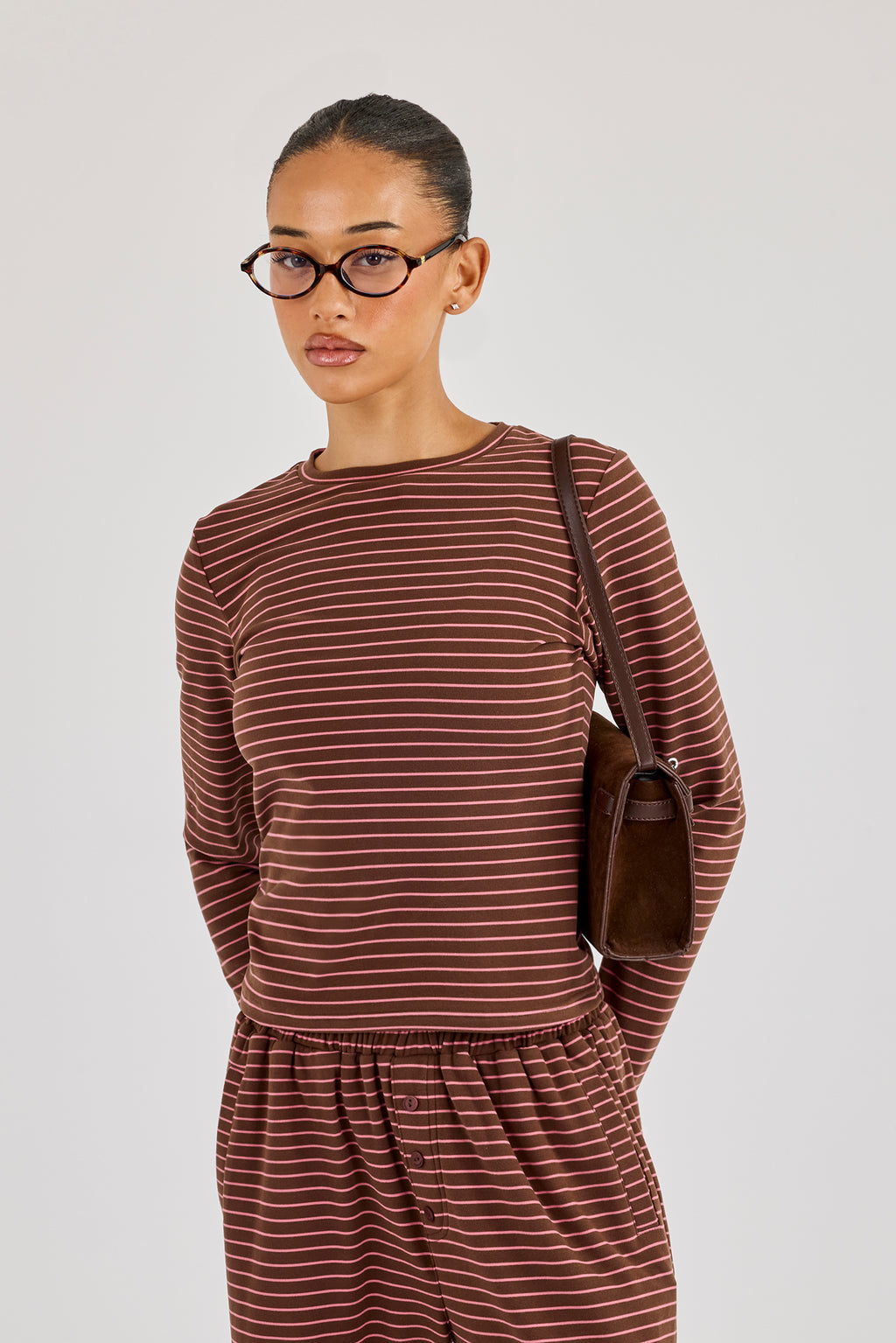 Langärmliges, weiches Streifenshirt mit gesticktem Logo im Nacken. Kombinieren Sie es mit der passenden, weichen Hose für den perfekten Look.
