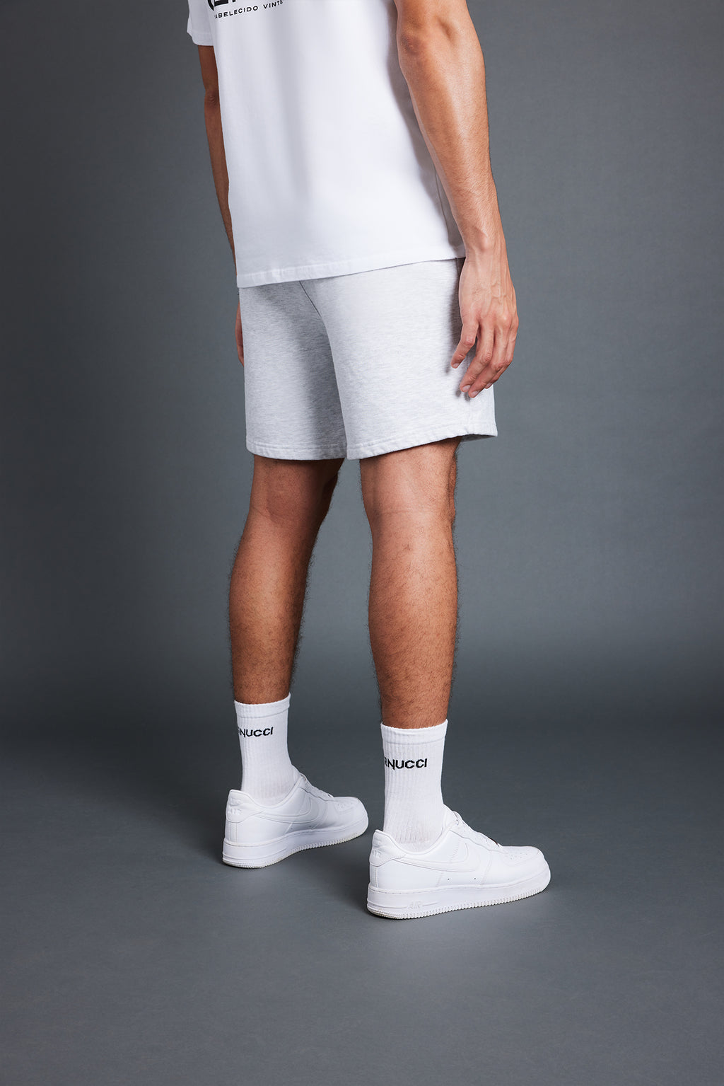 Cernucci Staples. Grau melierte Jersey-Shorts aus hochwertiger, schwerer, weicher Baumwolle.