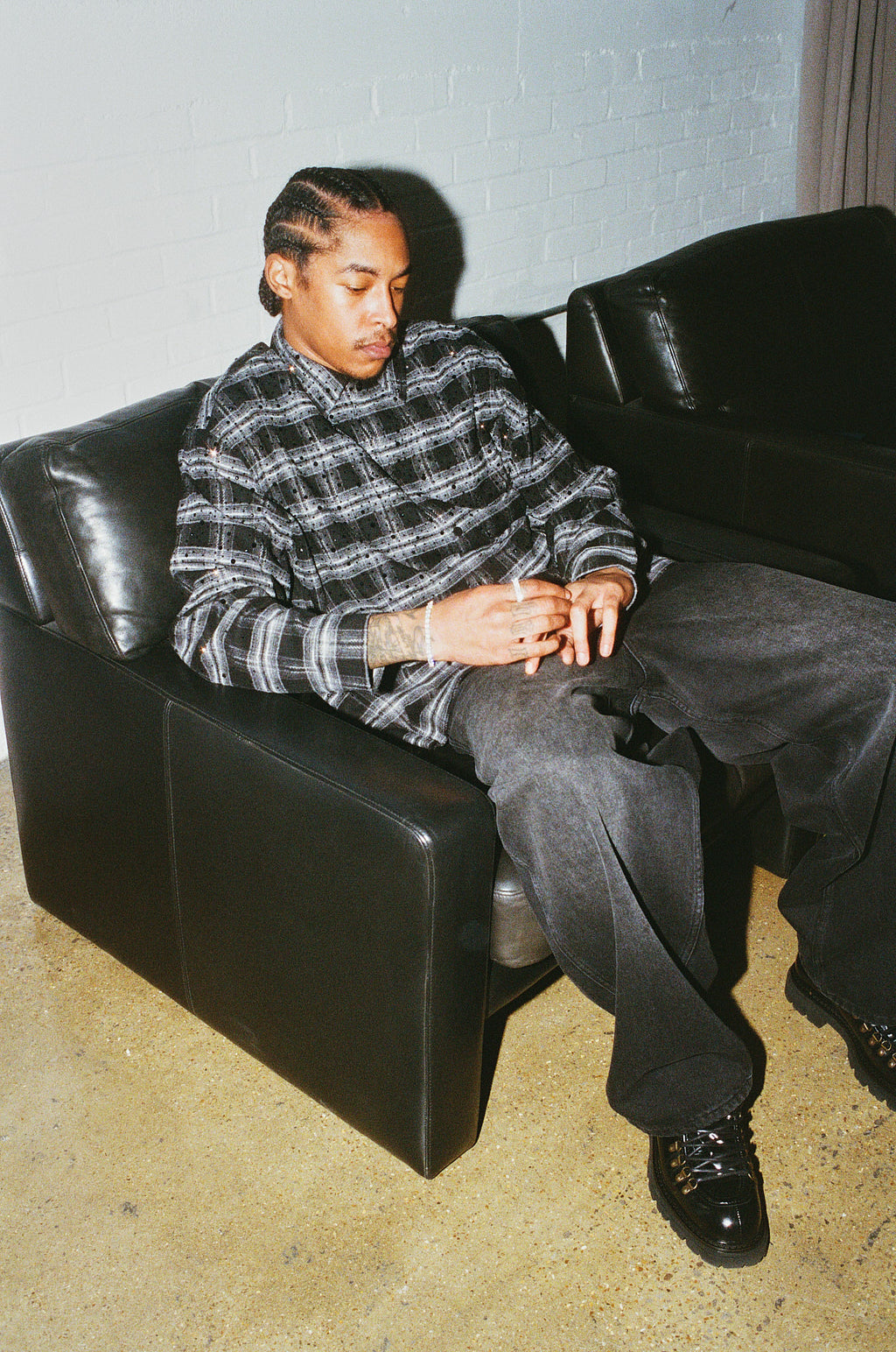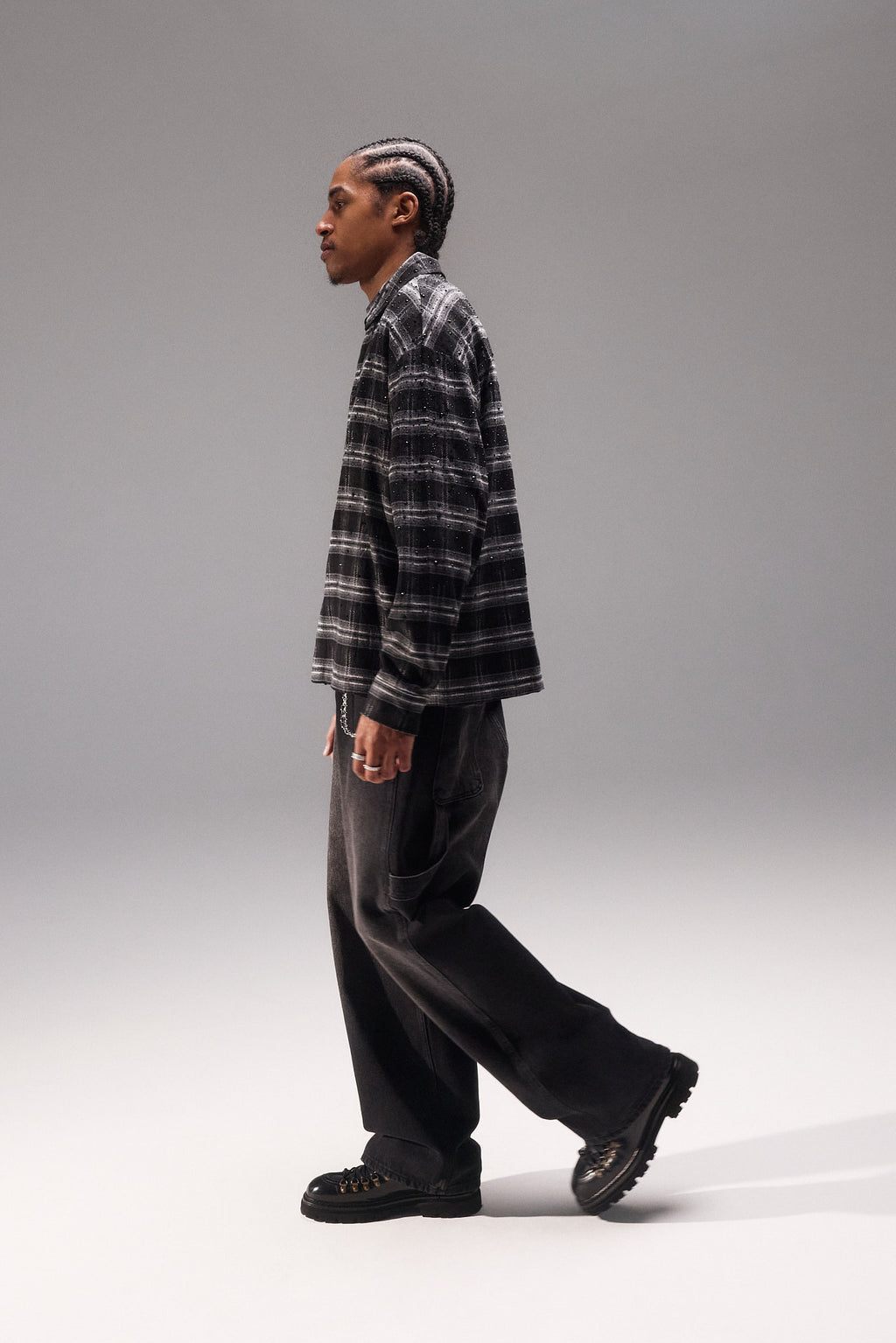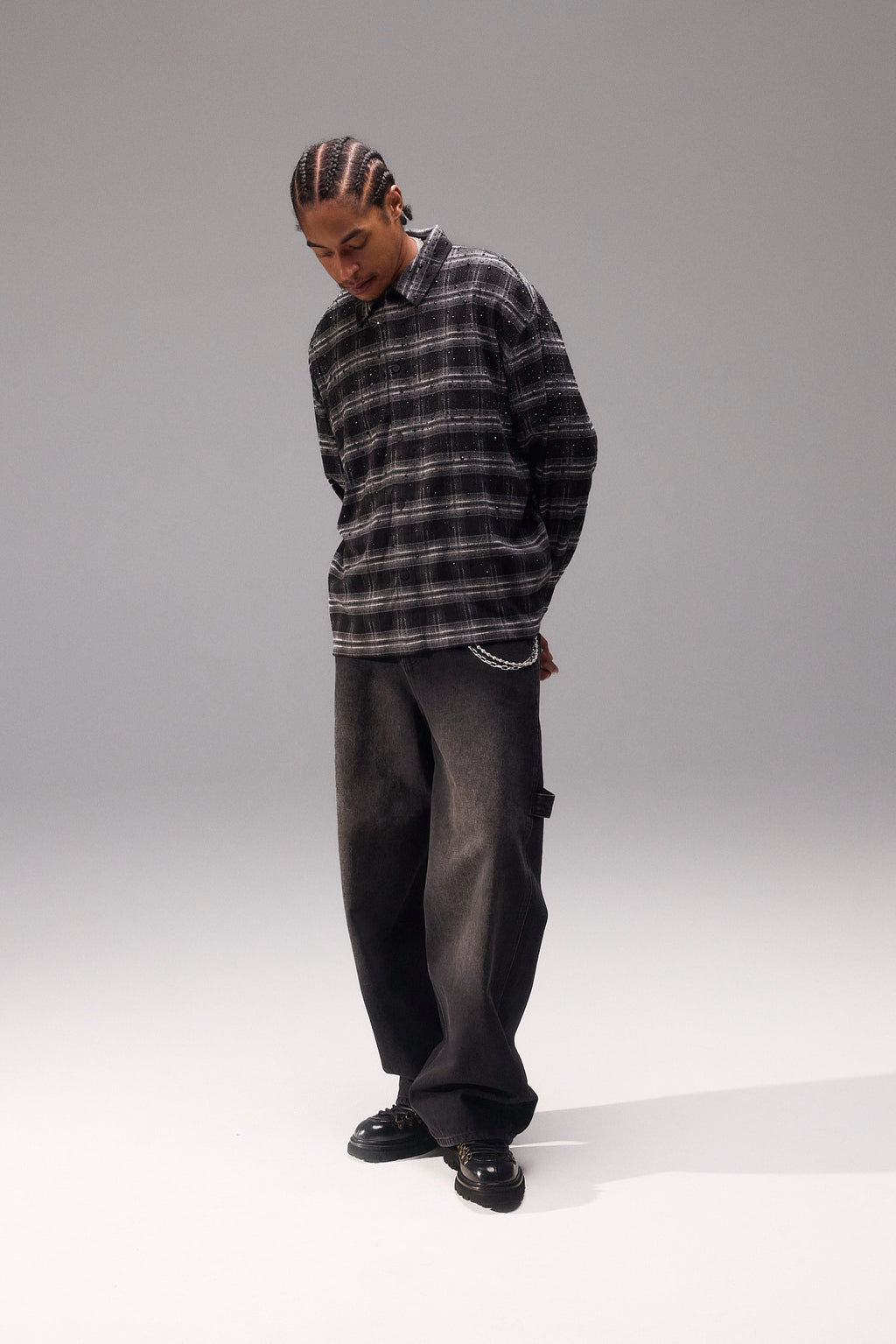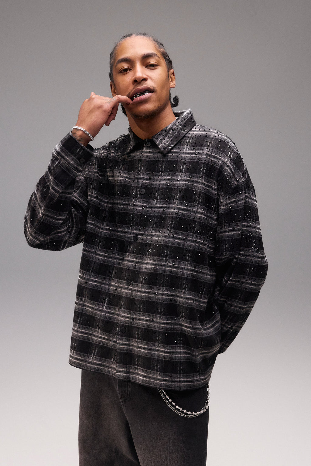 Unser schwarz-kariertes Hemd mit Strasssteinen. Hergestellt aus mittelschwerer, weicher Baumwolle.