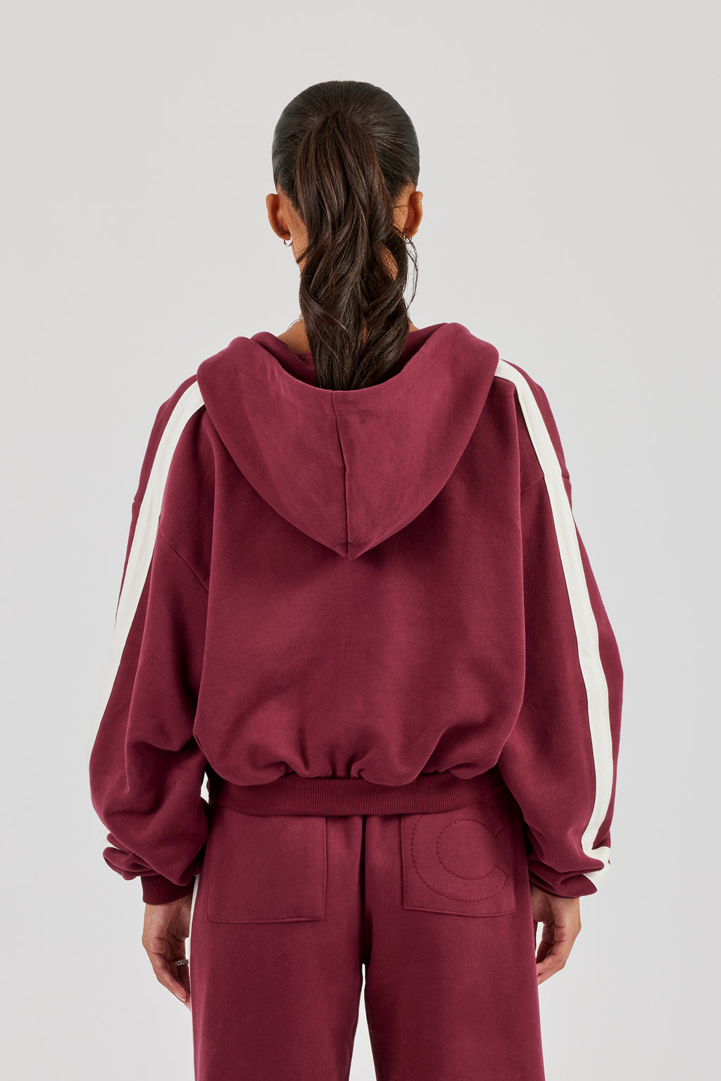 - Burgunderroter Kapuzenpullover mit durchgehendem Reißverschluss