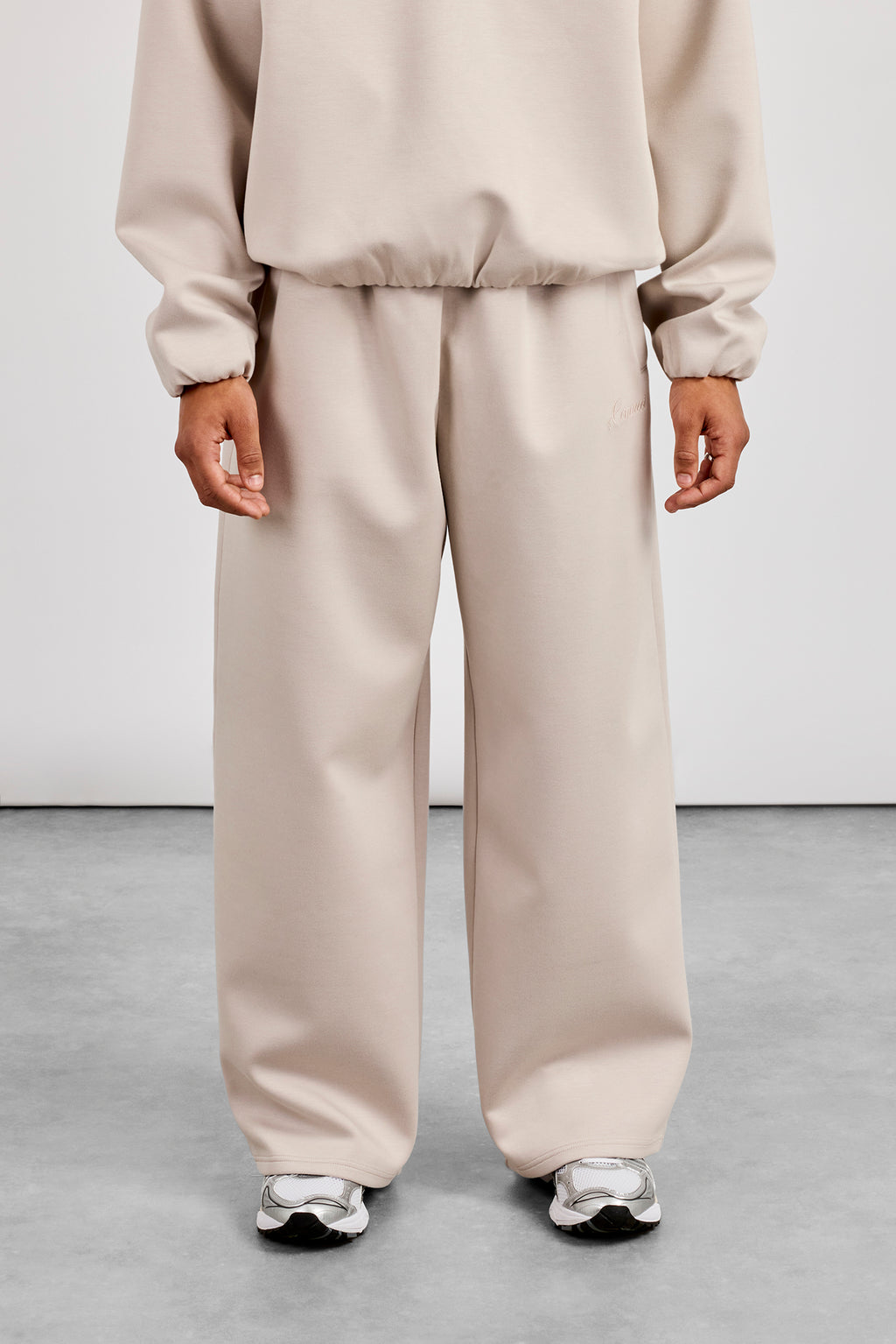 Hellgraue Scuba-Hose in lockerer Passform. Hochwertiges, weiches Scuba-Material. Kombiniere sie mit unserem passenden Hoodie für den perfekten Look.