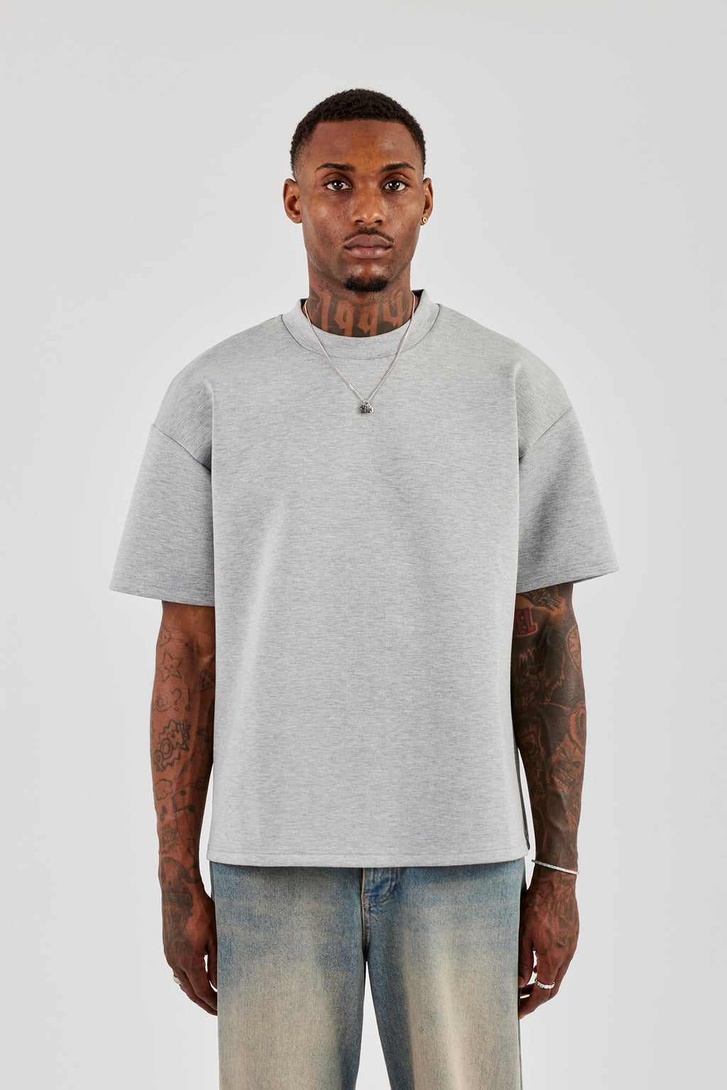 Graues T-Shirt in Oversize-Passform aus weichem Premium-Scuba