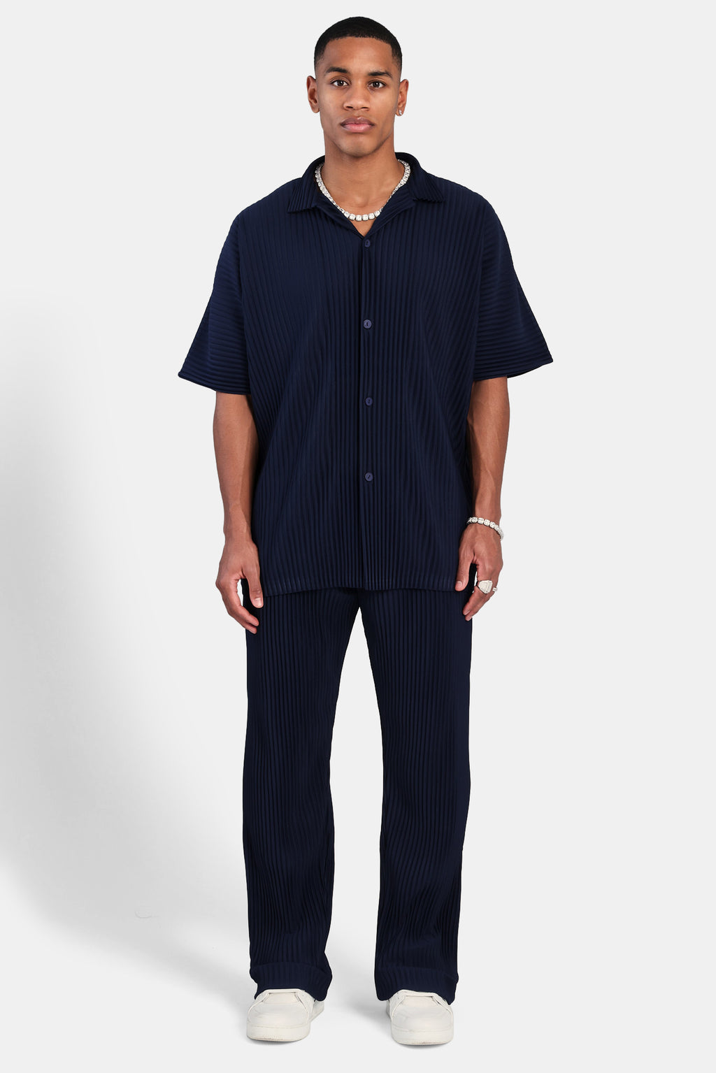 Unser marineblaues Kurzarmhemd ist ein Must-have für jeden Anlass. Hergestellt aus hochwertigem, mittelschwerem, atmungsaktivem Stoff mit Plissee-Effekt. Vervollständigen Sie den Look mit unserer Cargohose mit Bundfalten.