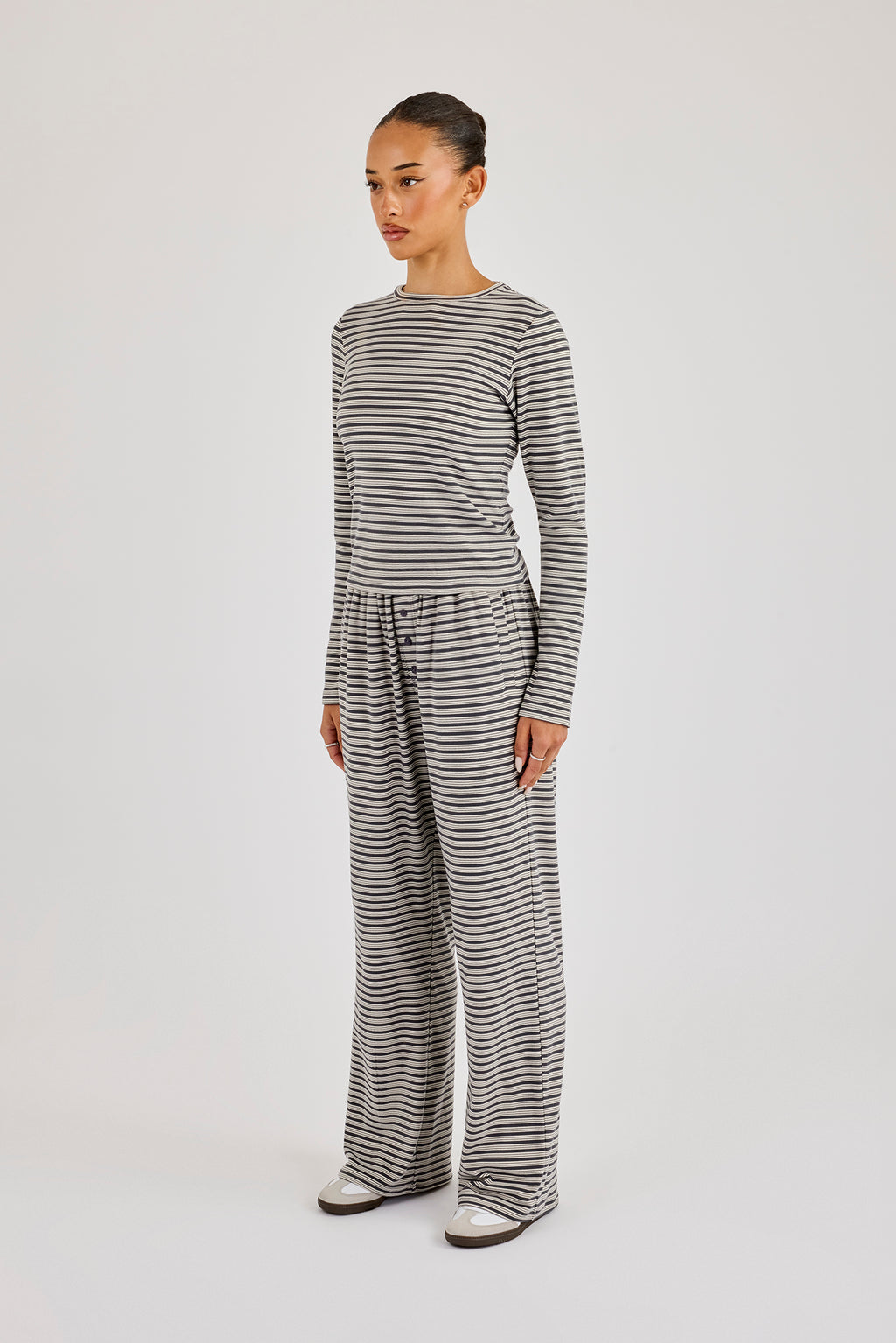 Gestreifte Hose mit weichem Griff und Knopfdetails. Kombinieren Sie sie mit dem passenden Oberteil aus weichem Griff für den perfekten Look.