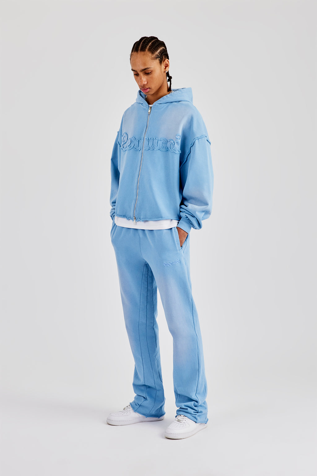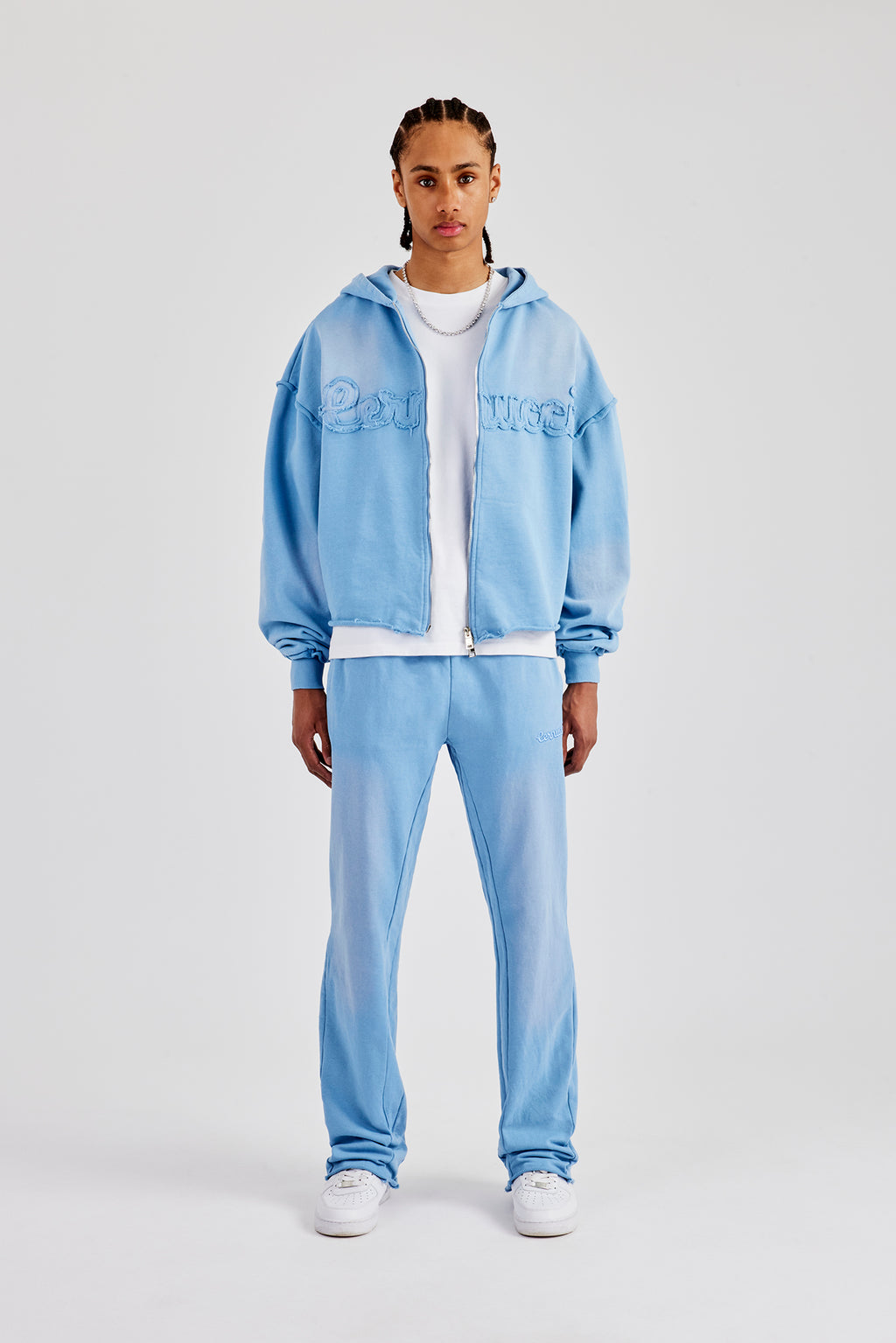 - Blauer Kapuzenpullover mit durchgehendem Reißverschluss