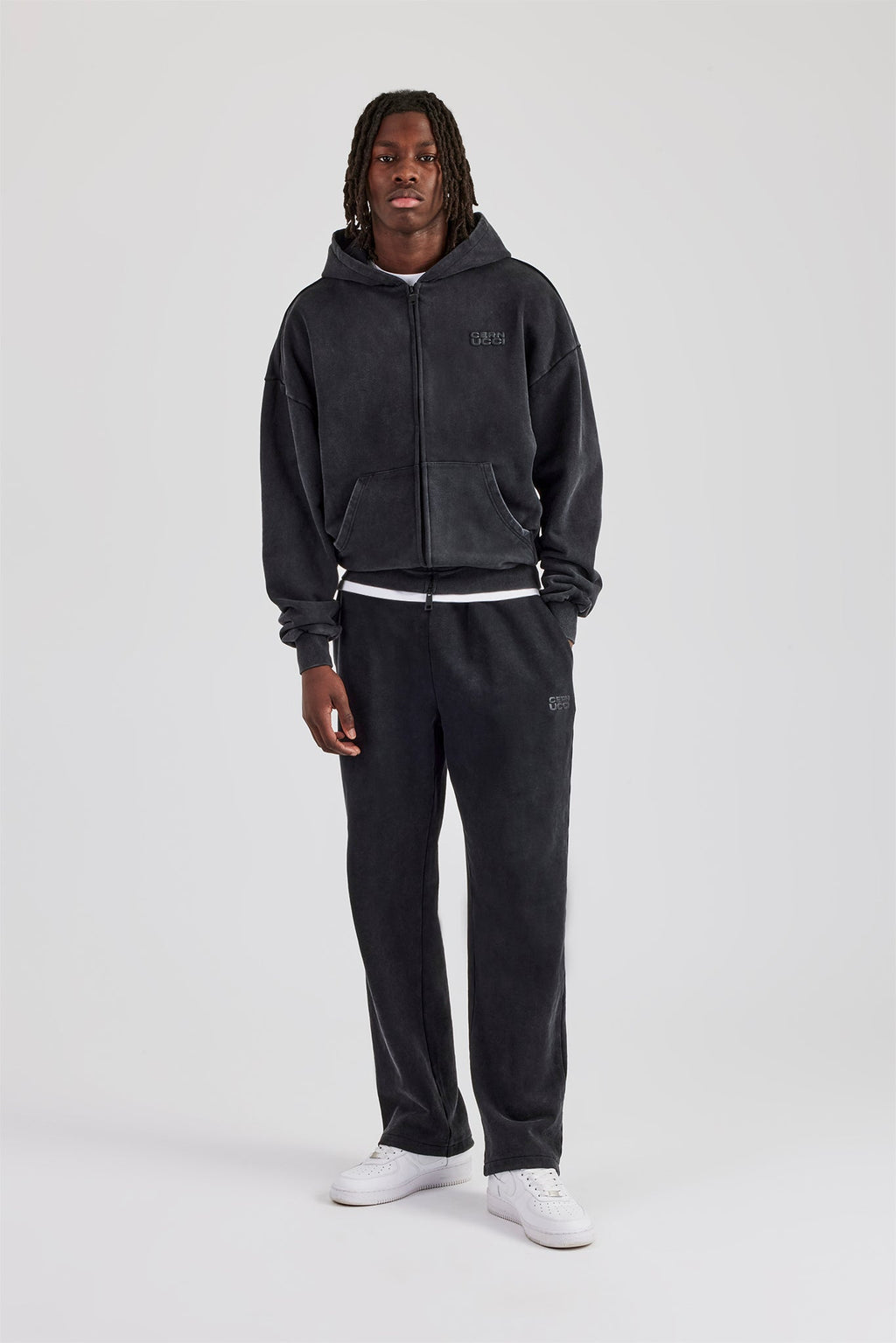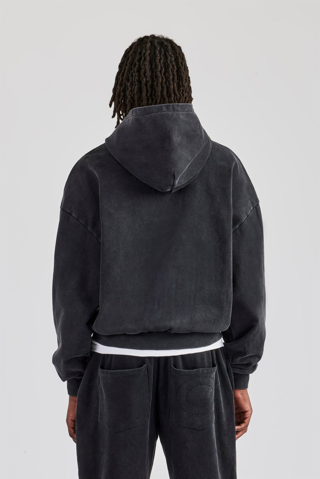 - Schwarzer Kapuzenpullover mit durchgehendem Reißverschluss