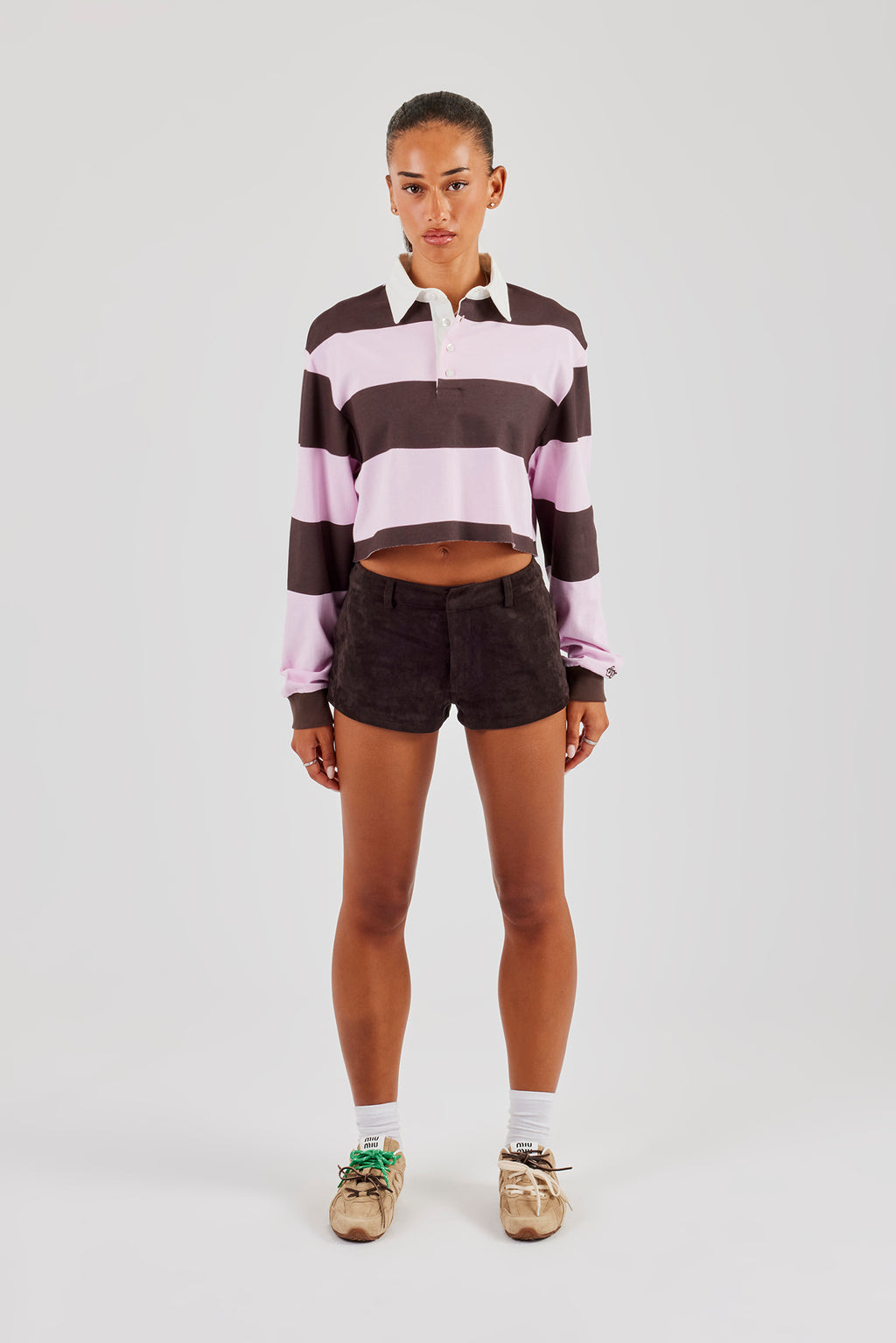 Kurzes, langärmliges, gestreiftes Rugby-Poloshirt mit gerippten Bündchen.