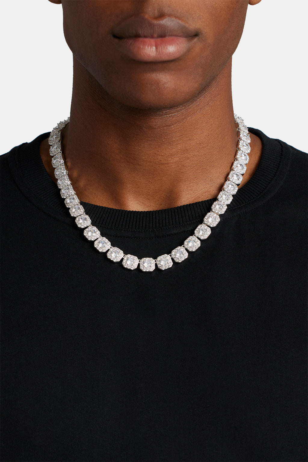 Flooded in multiple layers of hand-set stones, Cernuccis Clustered Tennis Chain is a bold new upgrade from the classic tennis look. Each layer draws attention to its larger centre stones, causing it to catch light from all angles. Define your look.