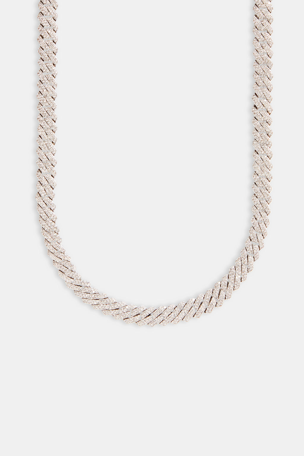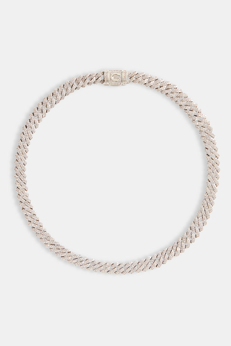Shine big in a Cernucci iced out Cuban Chain. Our custom designed prong link men's chain with hand set stones makes a statement. The 10mm links are flooded with stones and shine from every angle.