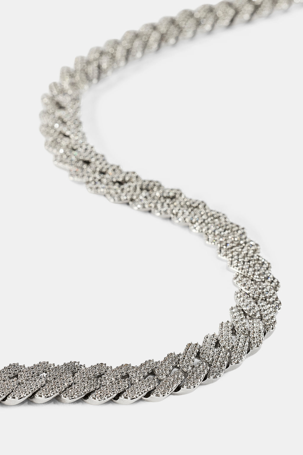 Shine big in a Cernucci iced out Cuban Chain. Our custom designed prong link men's chain with hand set stones makes a statement. The 14mm links are flooded with stones and shine from every angle. A Cernucci classic.