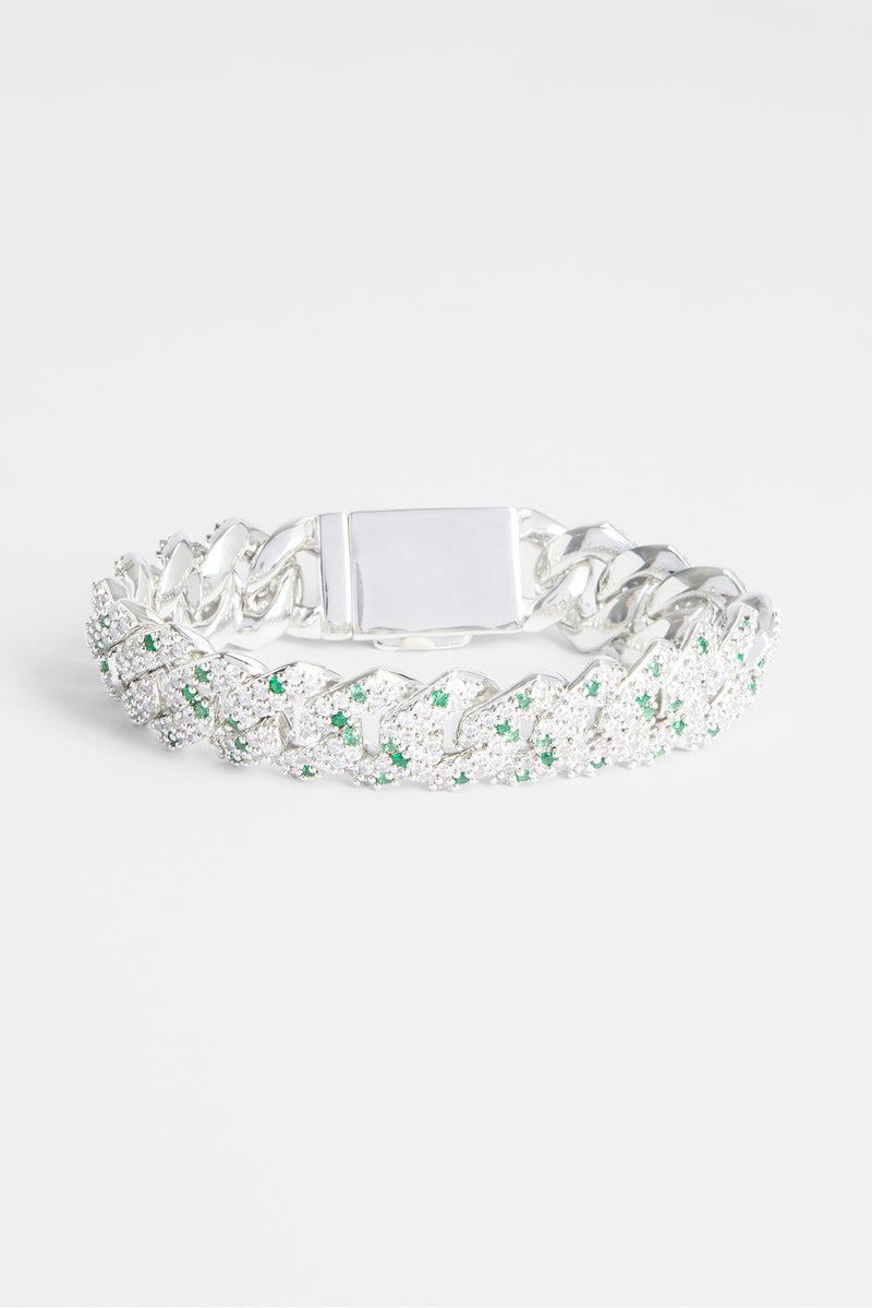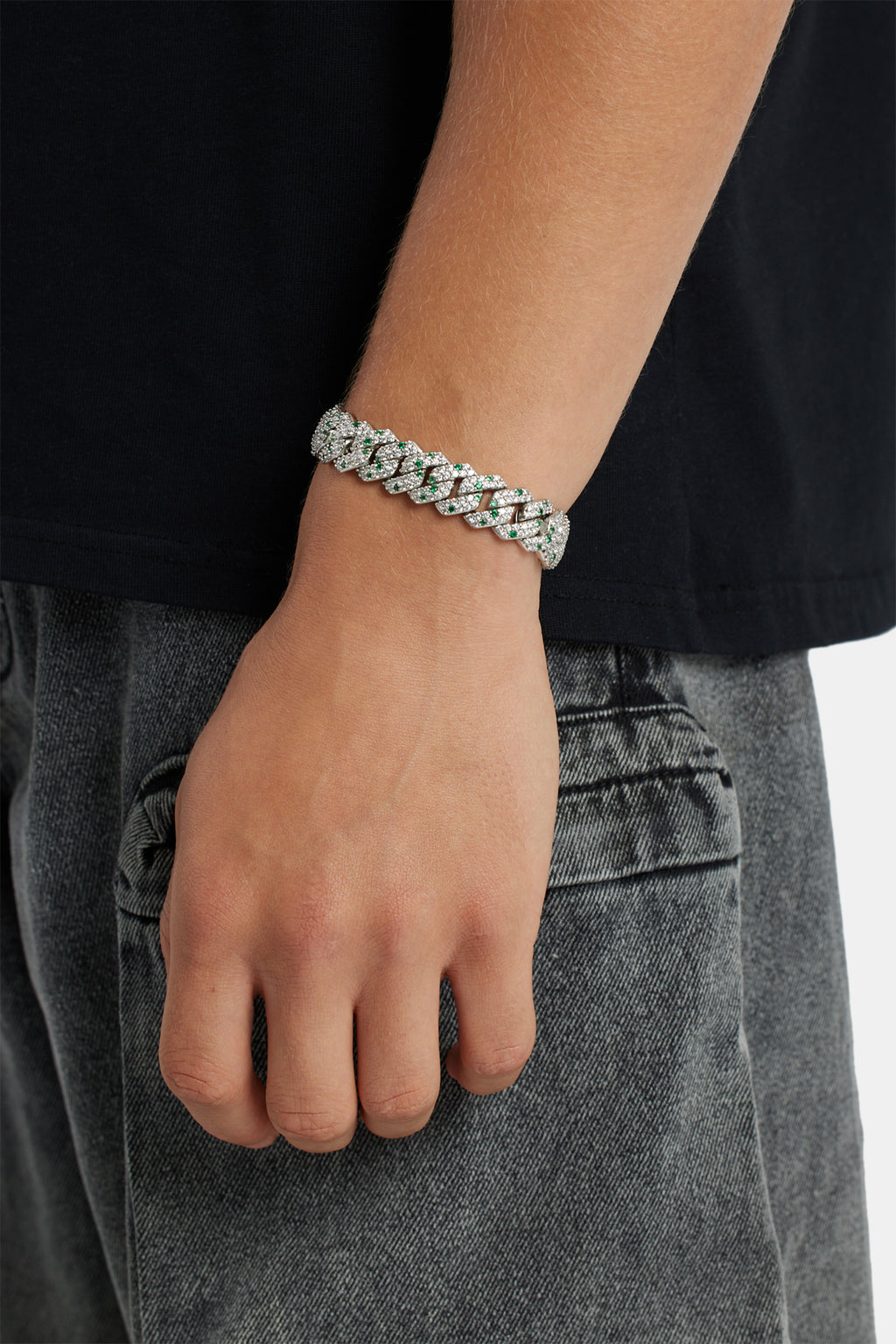 14mm Iced Clear & Green Prong Cuban Bracelet