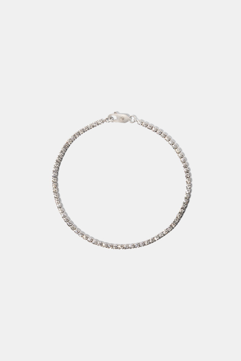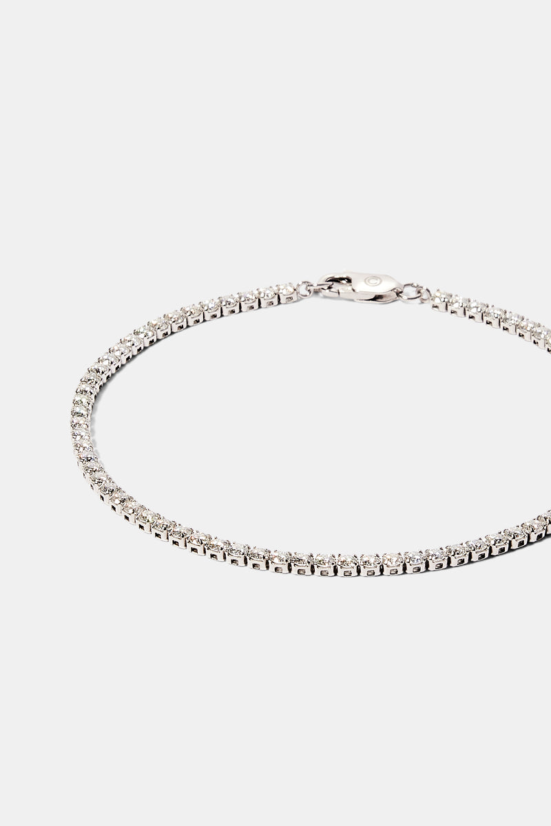 Our classic 2.5mm Moissanite Micro Tennis Bracelet has a round brilliant cut and VVS clarity meaning the diamonds are completely colourless on the eye. They will test positive as diamonds on most handheld diamond testers. The perfect alternative to large diamonds that cost thousands.