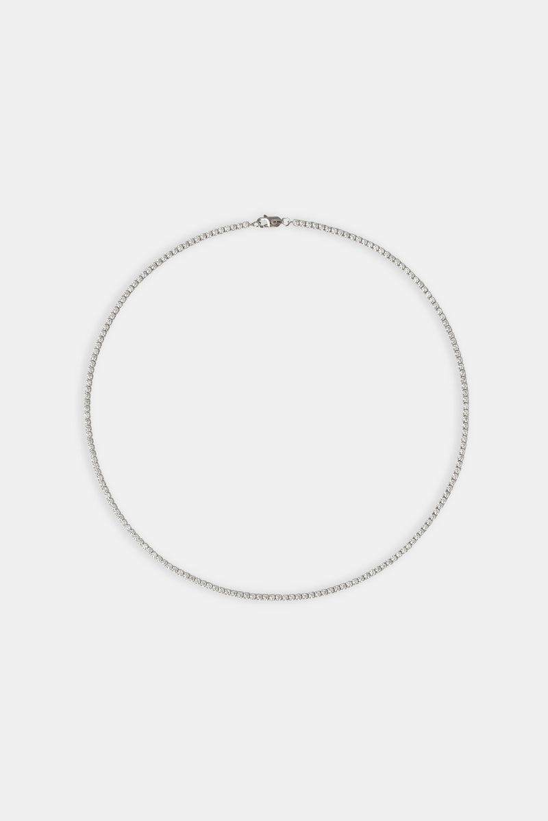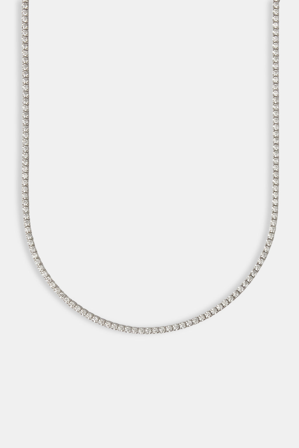 Our classic 2.5mm Moissanite Micro Tennis Chain & Bracelet has a round brilliant cut and VVS clarity meaning the diamonds are completely colourless on the eye. They will test positive as diamonds on most handheld diamond testers. The perfect alternative to large diamonds that cost thousands.