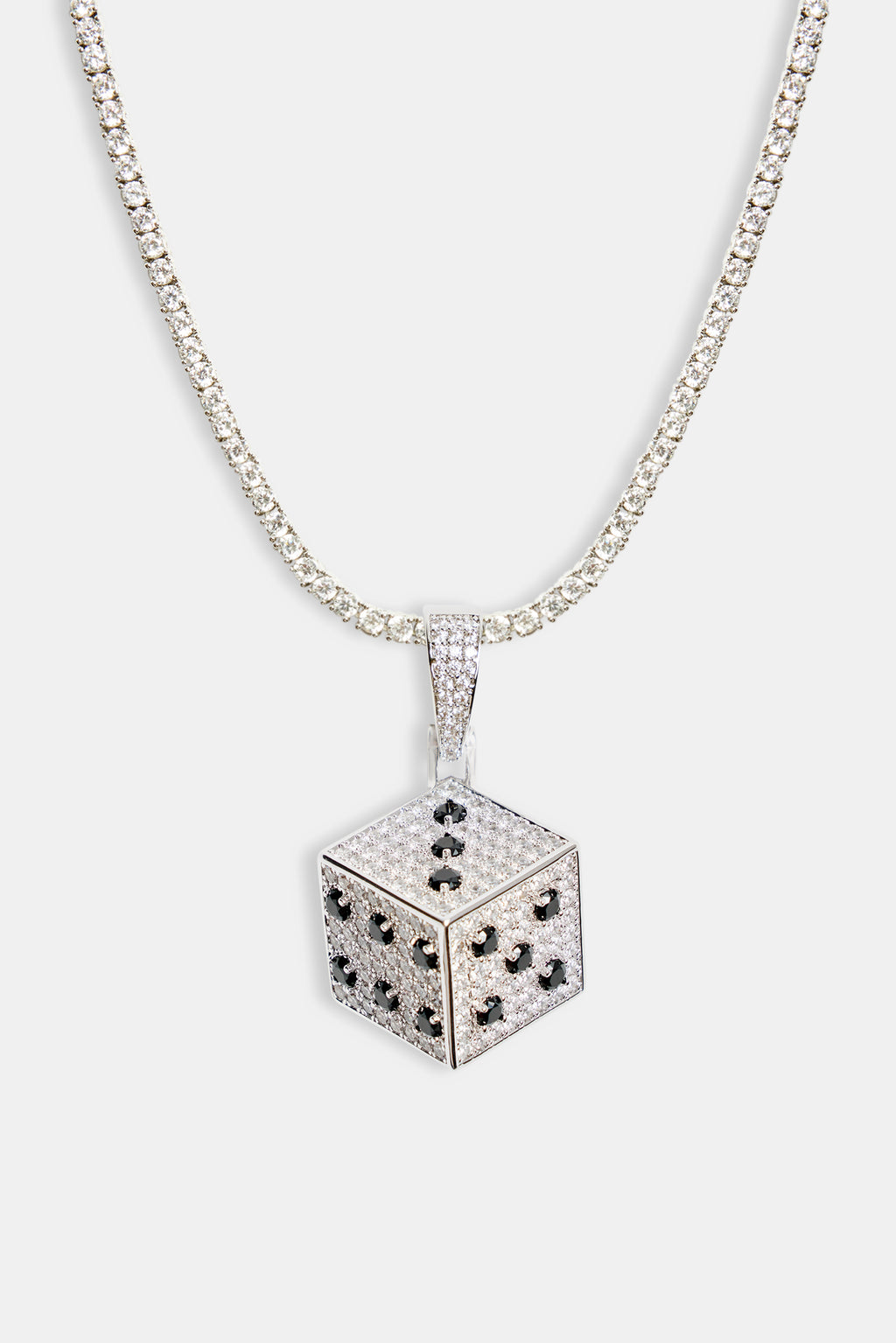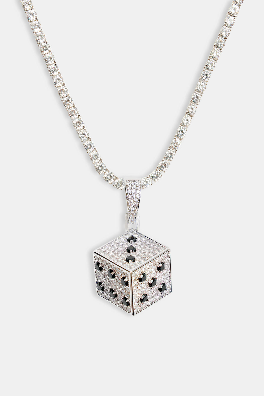 Iced Dice Motif, Rhodium Plated and finished with Cubic Zirconia stones. Unmatched shine for unparalleled style.