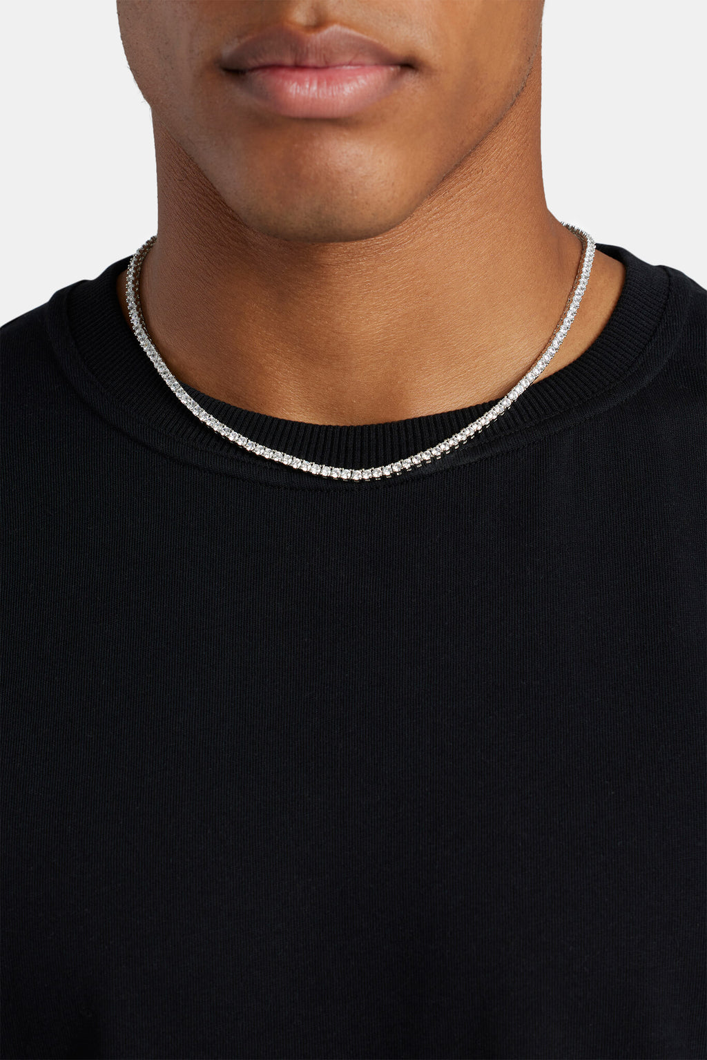 Need a subtle look with big shine? Look no further. The 3mm round cut stones on this Tennis Chain reflect light like no other. You wont find a bolder statement.