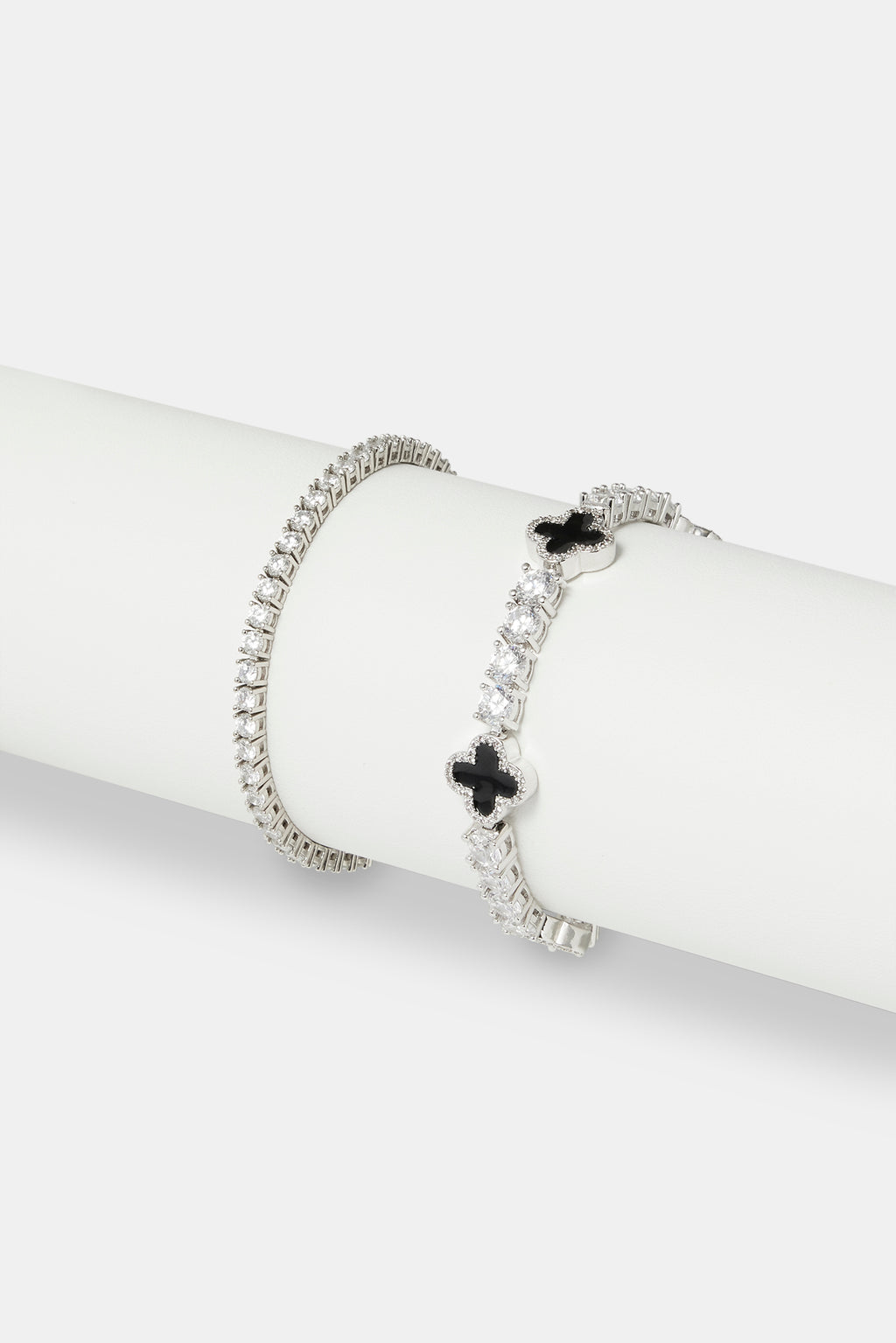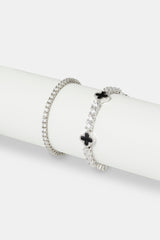 5mm Black Motif Tennis Bracelet & 3mm Tennis Bracelet - White
