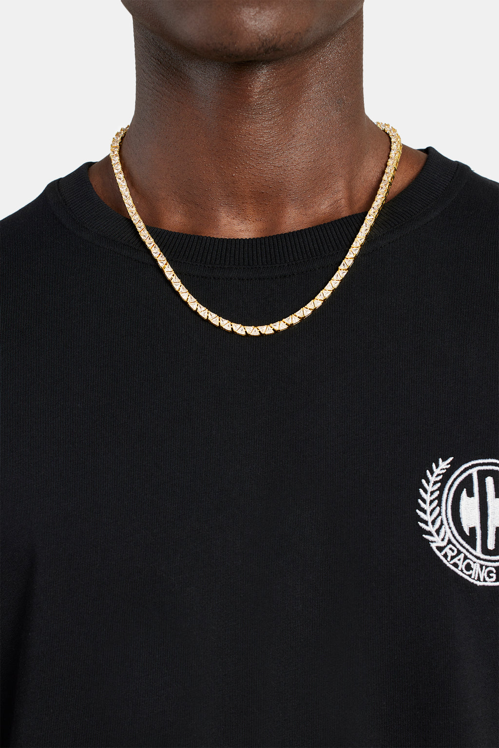 Want a classic look with big shine? This chain is for you. These timeless tennis chains are tightly held together and feature hand-set stones throughout. You will demand respect while rocking this chain in Gold. A guaranteed head turner.