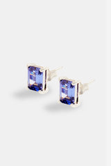 Look sharp and stand out with these 6mm Blue CZ Baguette Stone Stud Earrings.