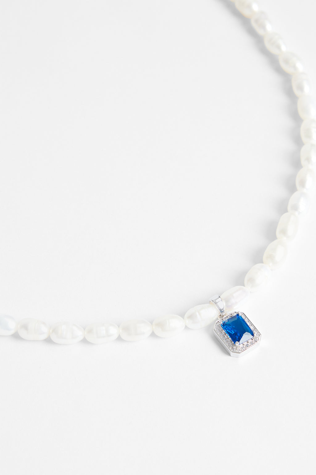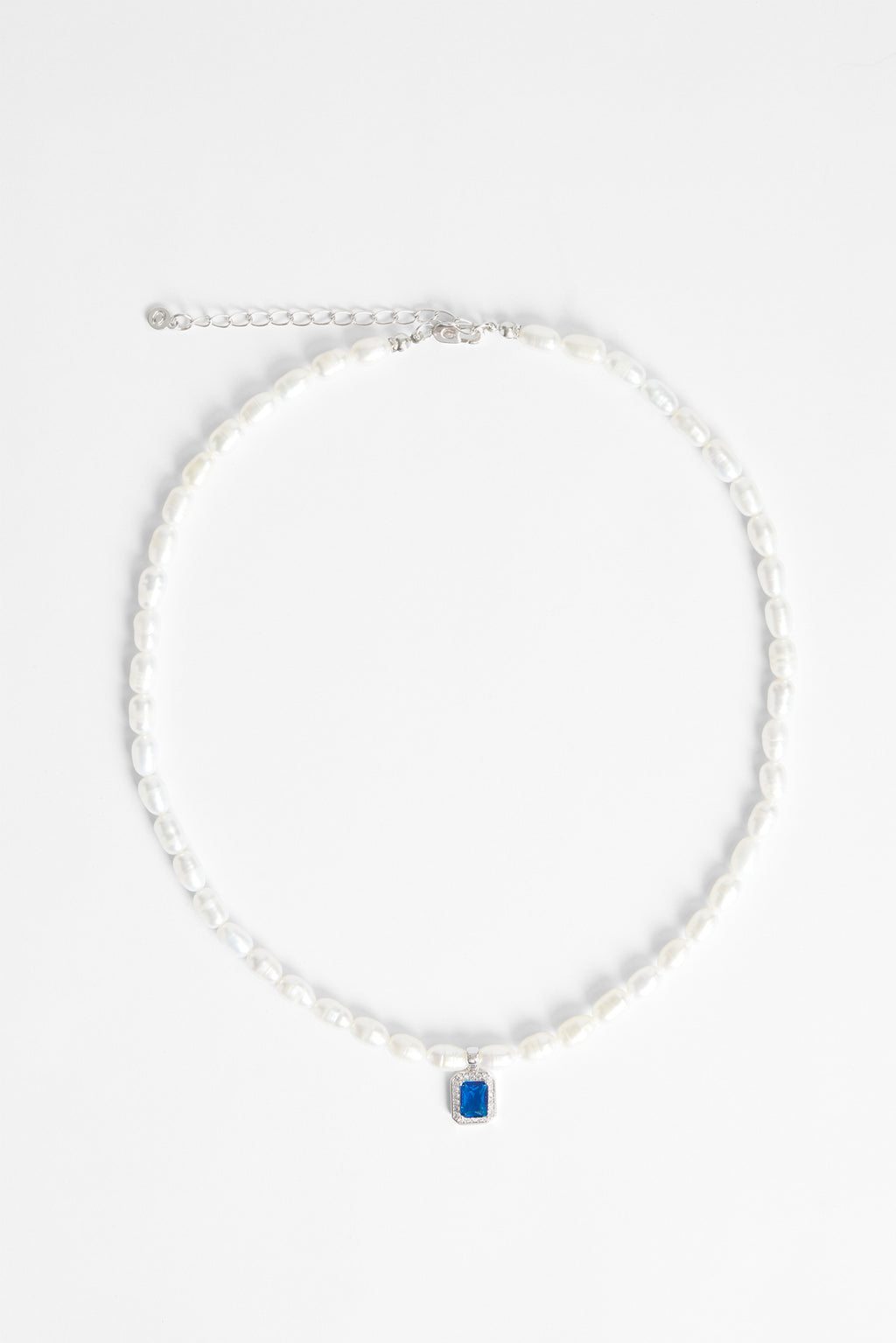 6mm Freshwater Pearl & Blue Gemstone Necklace