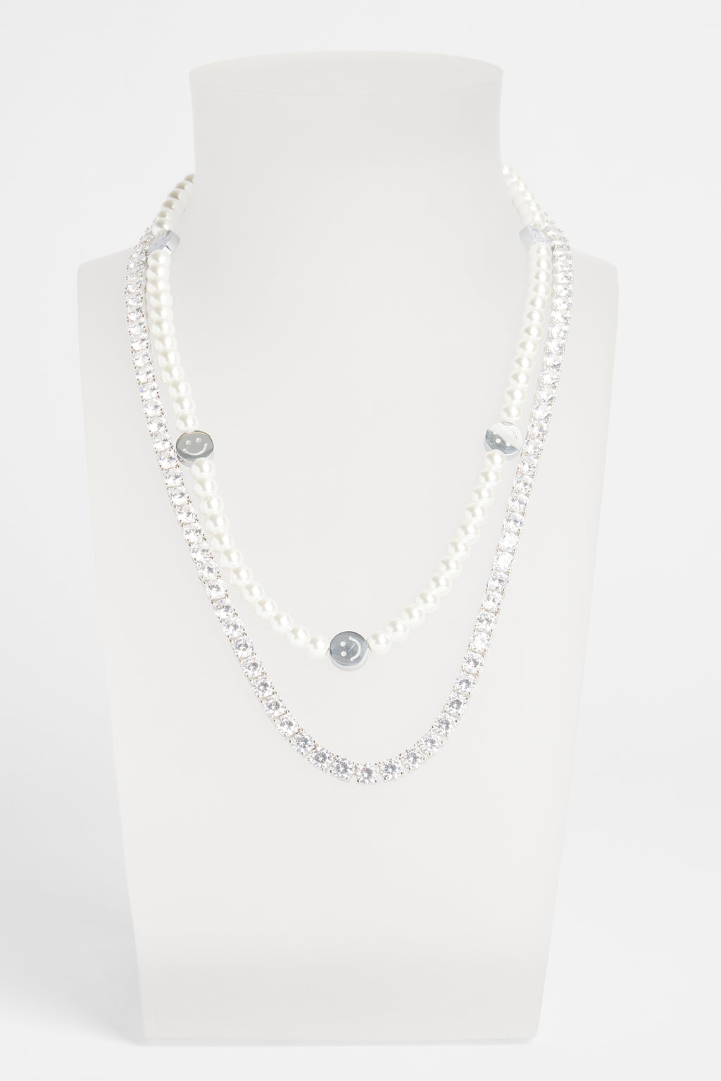 6mm Pearl and Happy Face Necklace & 5mm Tennis Chain bundle gives you a fresh and distinct look. You cant go wrong when saving on the individual items. Layer up on the low.