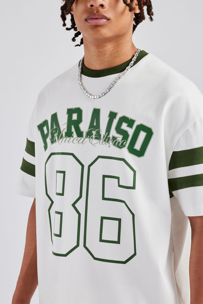86 varsity skater oversized t-shirt in a medium weight, soft touch cotton. Pair with the matching short for the complete look.