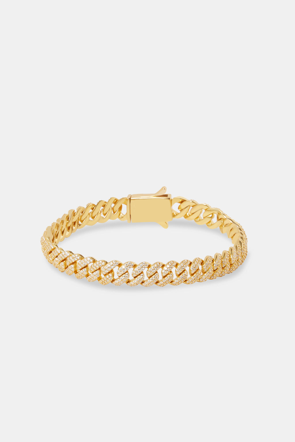 Our classic 8mm Moissanite Vermeil Cuban Bracelet has a round brilliant cut and VVS clarity meaning the diamonds are completely colourless on the eye. They will test positive as diamonds on most handheld diamond testers. The perfect alternative to large diamonds that cost thousands.