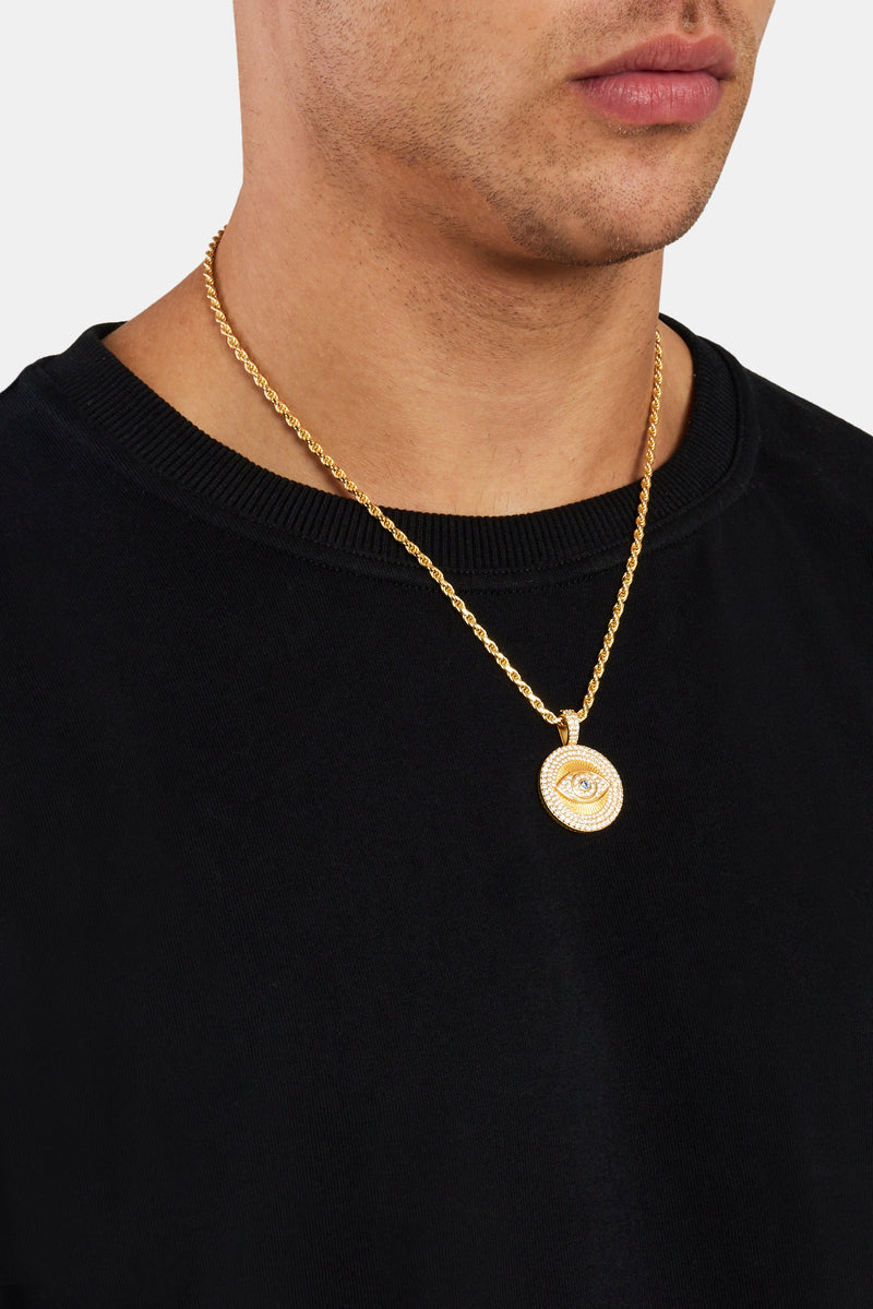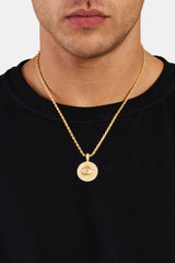 The Iced Eye Pendant provides perception beyond ordinary sight. This symbolic piece is flooded with hand-set stones which shine from all angles. Be a visionary.