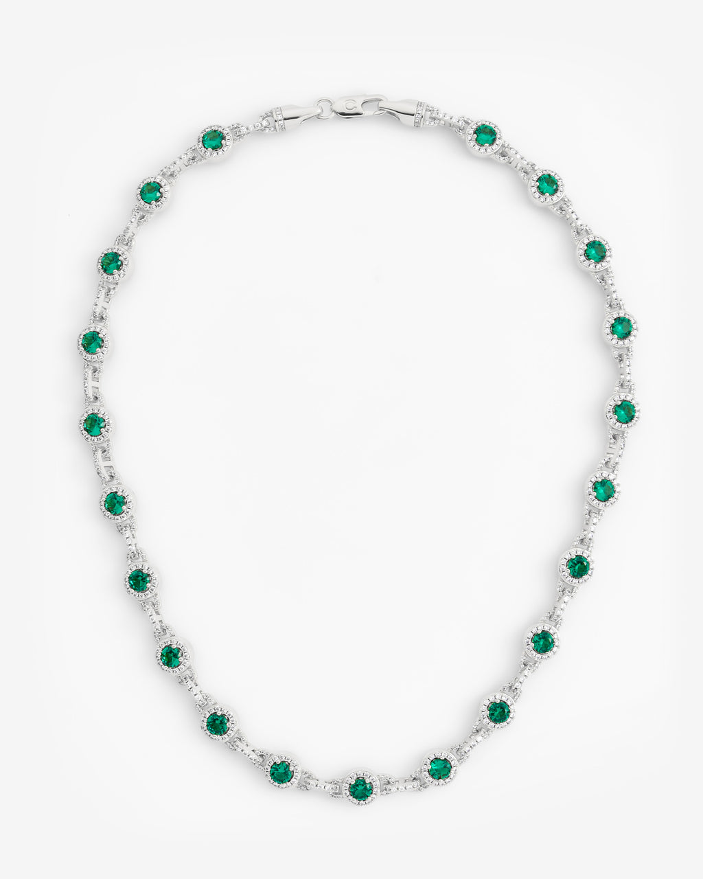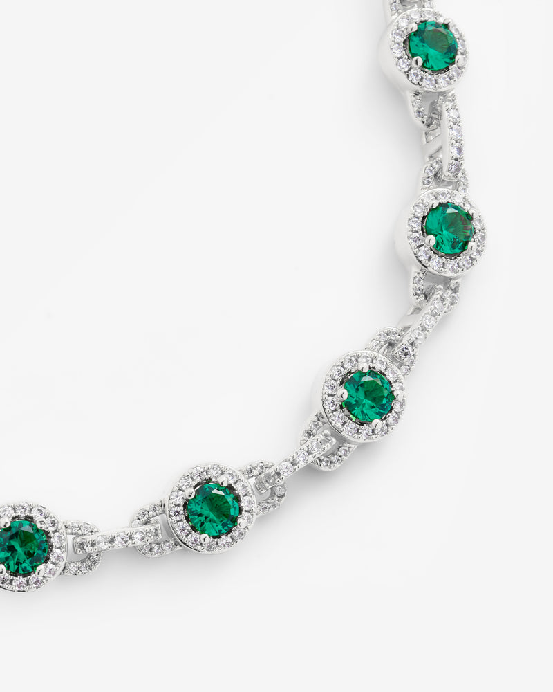 Iced out link chain with green centre stones for an unparalleled shine. Upgrade your fit with the perfect piece.