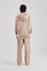 Stone acid wash zip through hoodie with raw edge detail. Premium heavyweight soft touch jersey.