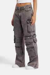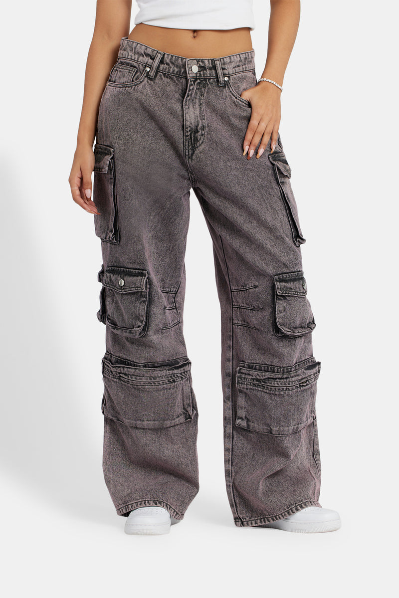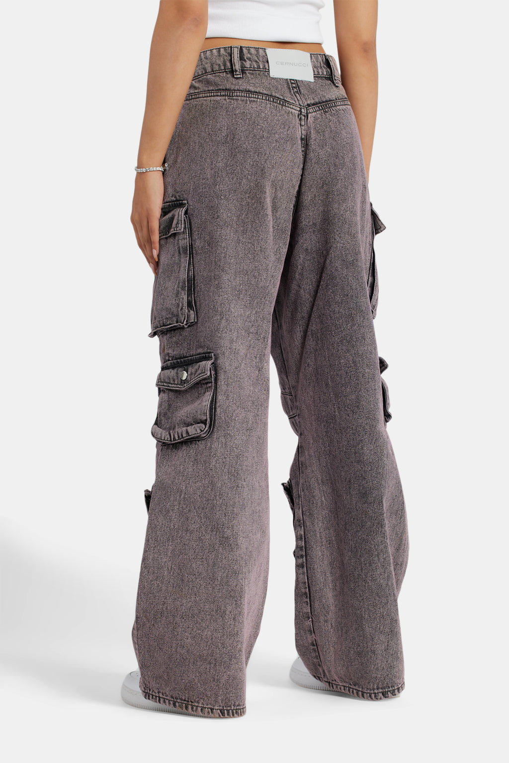 Pink acid washed jeans, in rigid cotton denim. Baggy fit finished with branded trims.