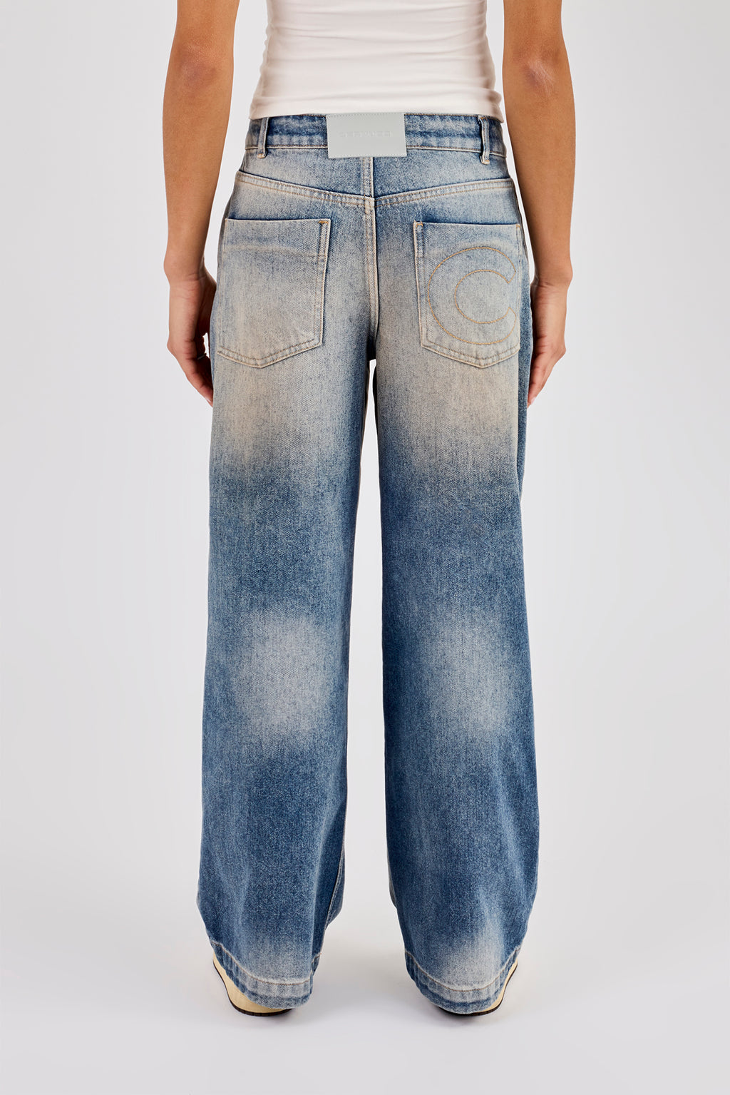 Our dirty wash jeans, in rigid cotton denim. Baggy fit finished with branded trims.
