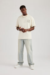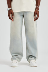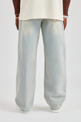 Bleach wash jeans in a rigid cotton denim. Baggy fit finished with branded trims.