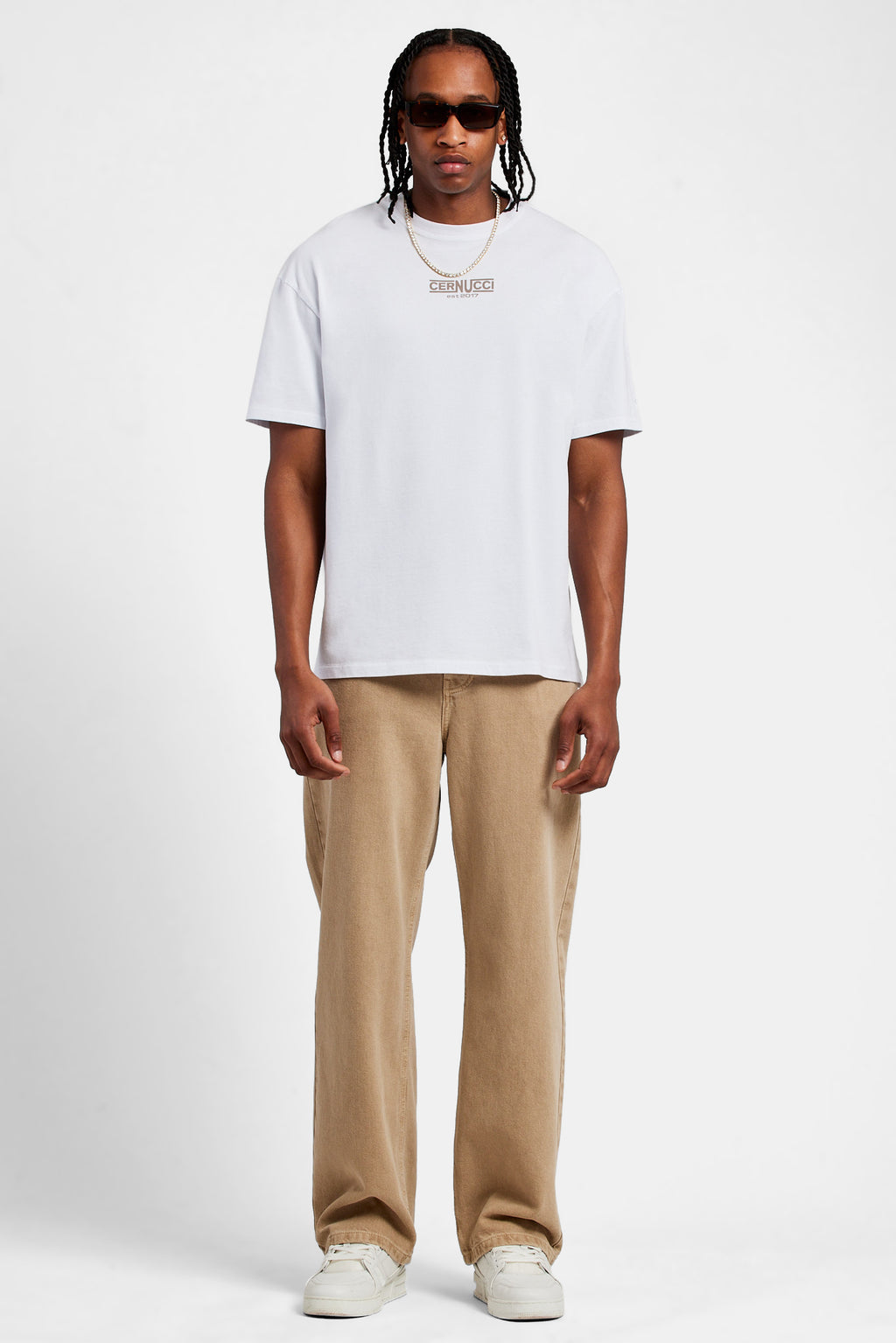 Stone washed jeans, in rigid cotton denim. Baggy fit finished with branded trims.