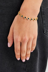 Sleek, bold, and lowkey loud. The Black Enamel Motif Bracelet – 8mm brings graphic edge and clean contrast, with signature motifs set in deep black enamel across a chunky link design. It’s giving everyday statement, built for stacking or standing strong solo.