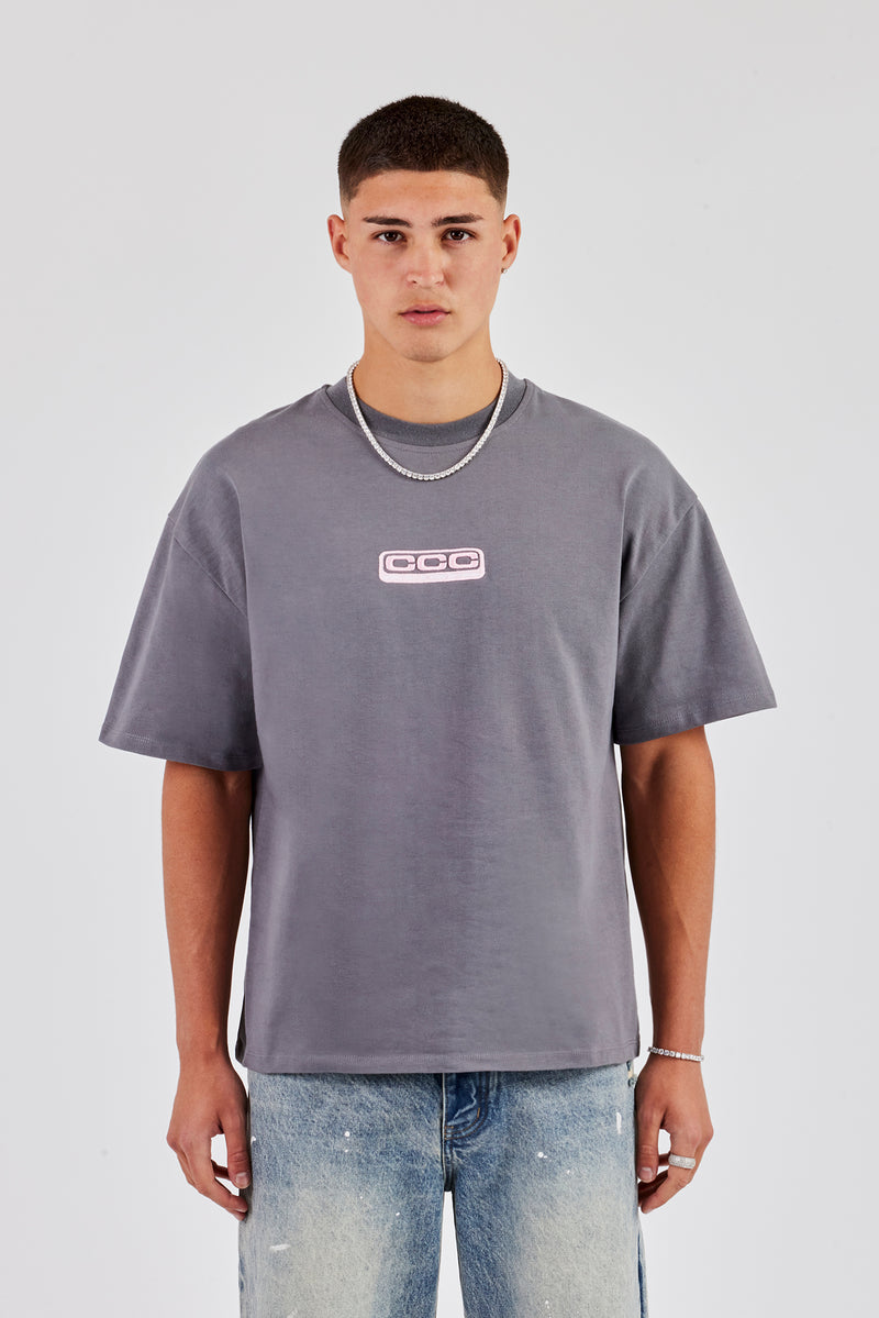 New t-shirt fits featuring our best selling boxy fit, dropped shoulders and cropped body designed to sit on the waist. Charcoal short sleeve t-shirt featuring contrast embroidered branding.