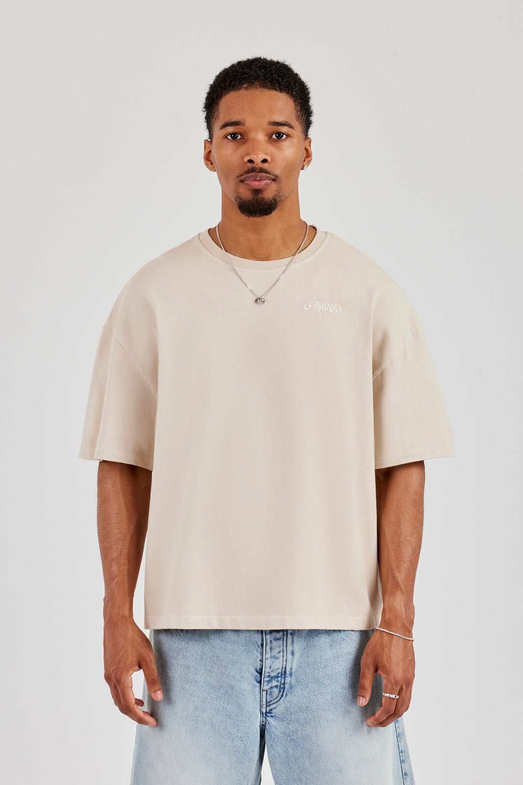 Boxy logo back print t-shirt, in a medium weight soft touch jersey