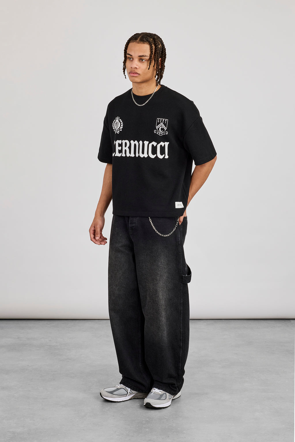 Short sleeve waffle t-shirt featuring front Cernucci print. Boxy fit, dropped shoulders in a soft touch premium jersey.