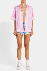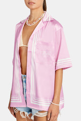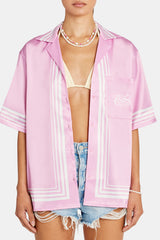 Soft satin look boarder print revere collar shirt with pocket detail.