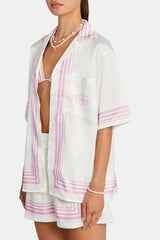 Soft satin look boarder print revere collar shirt with pocket detail.